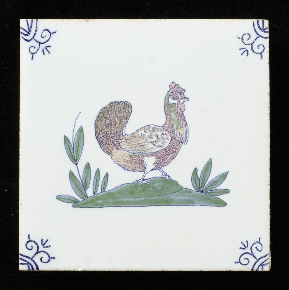 Tegel van keramiek met tinglazuur, voorstellende: ki...