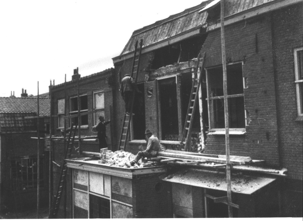 De woning van de heer Nol Ratering met oorlogsschade...