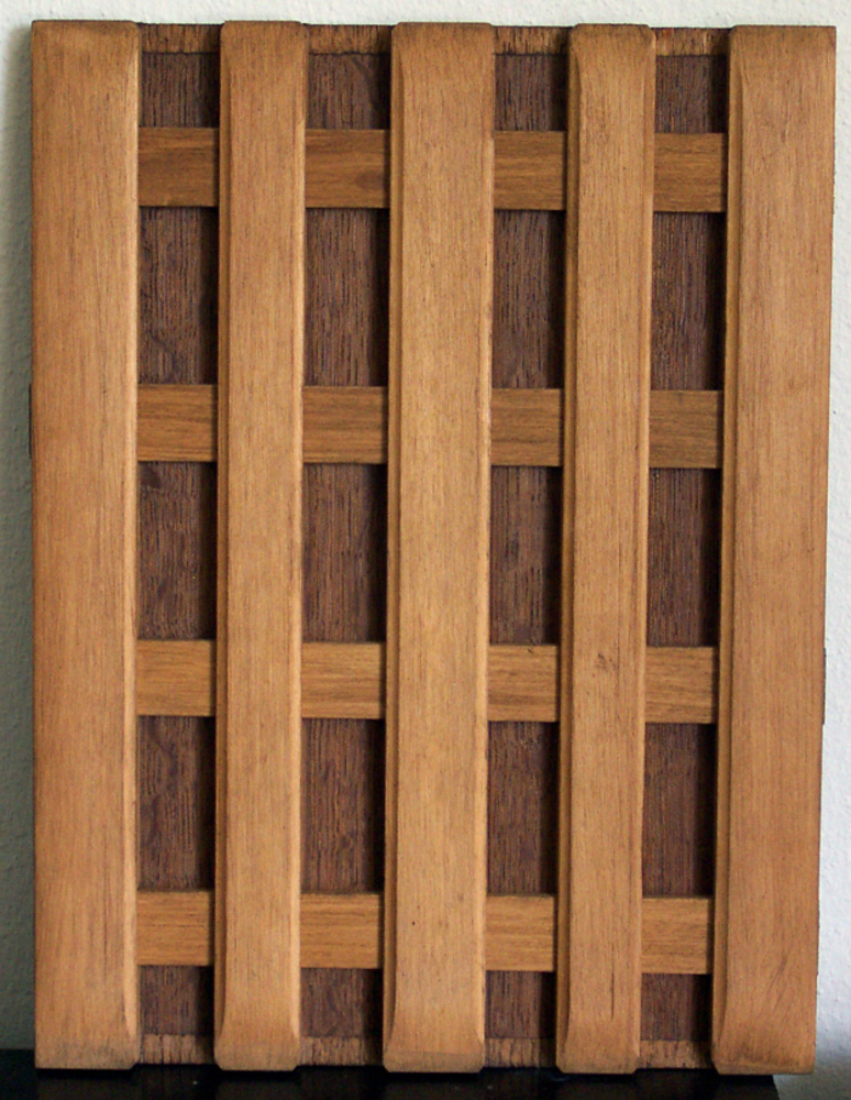 Reclamemateriaal van rubber en hout in de vorm van e...