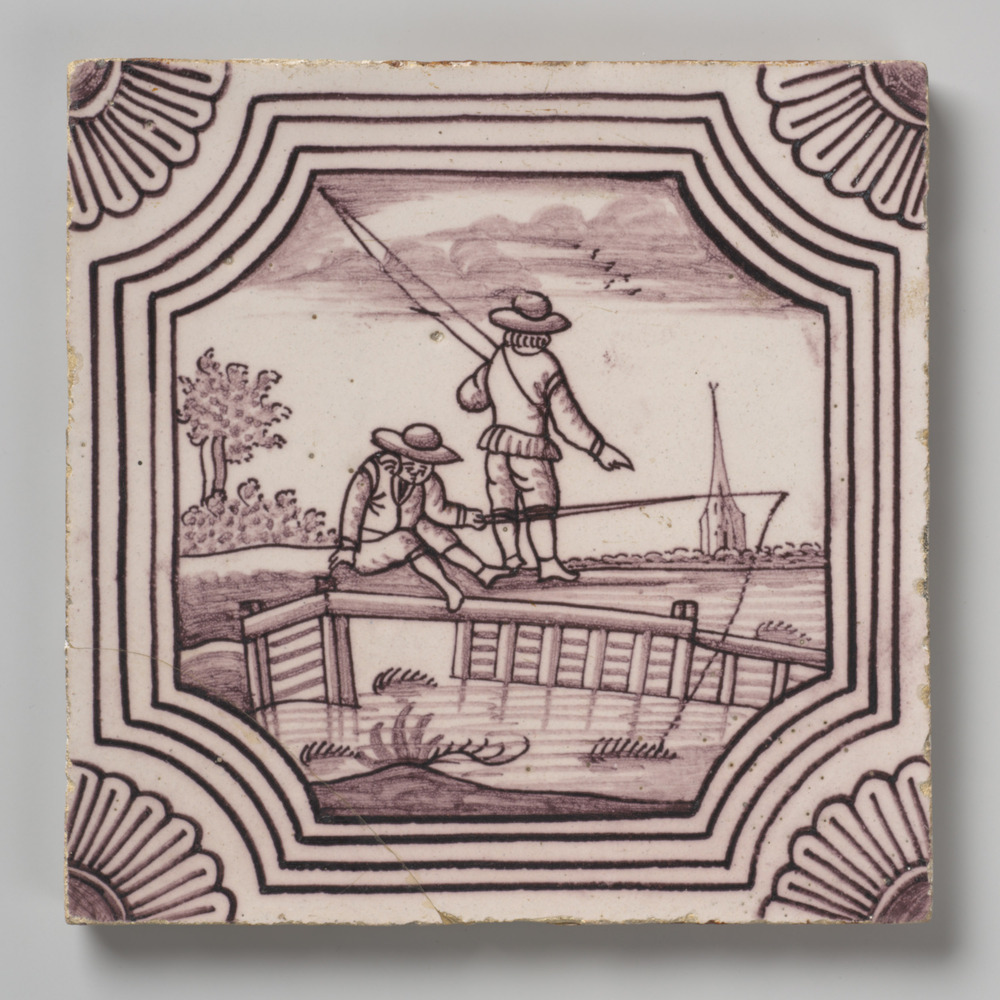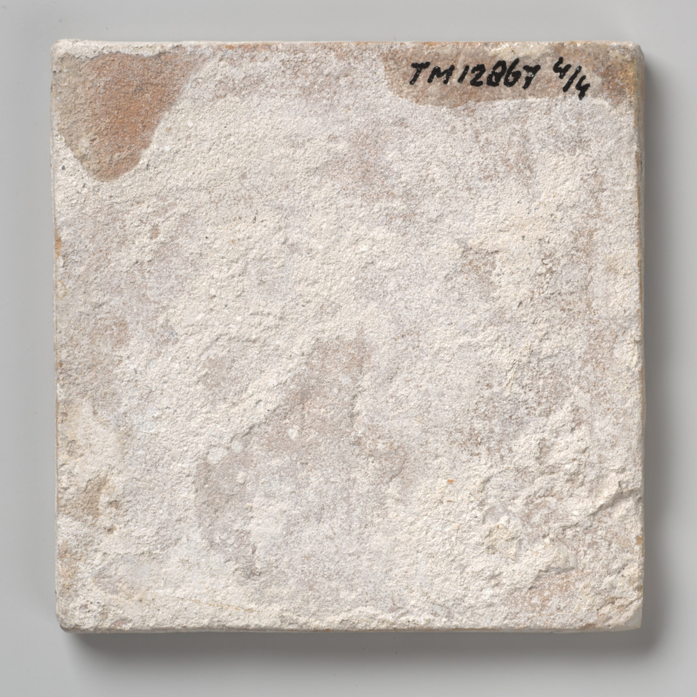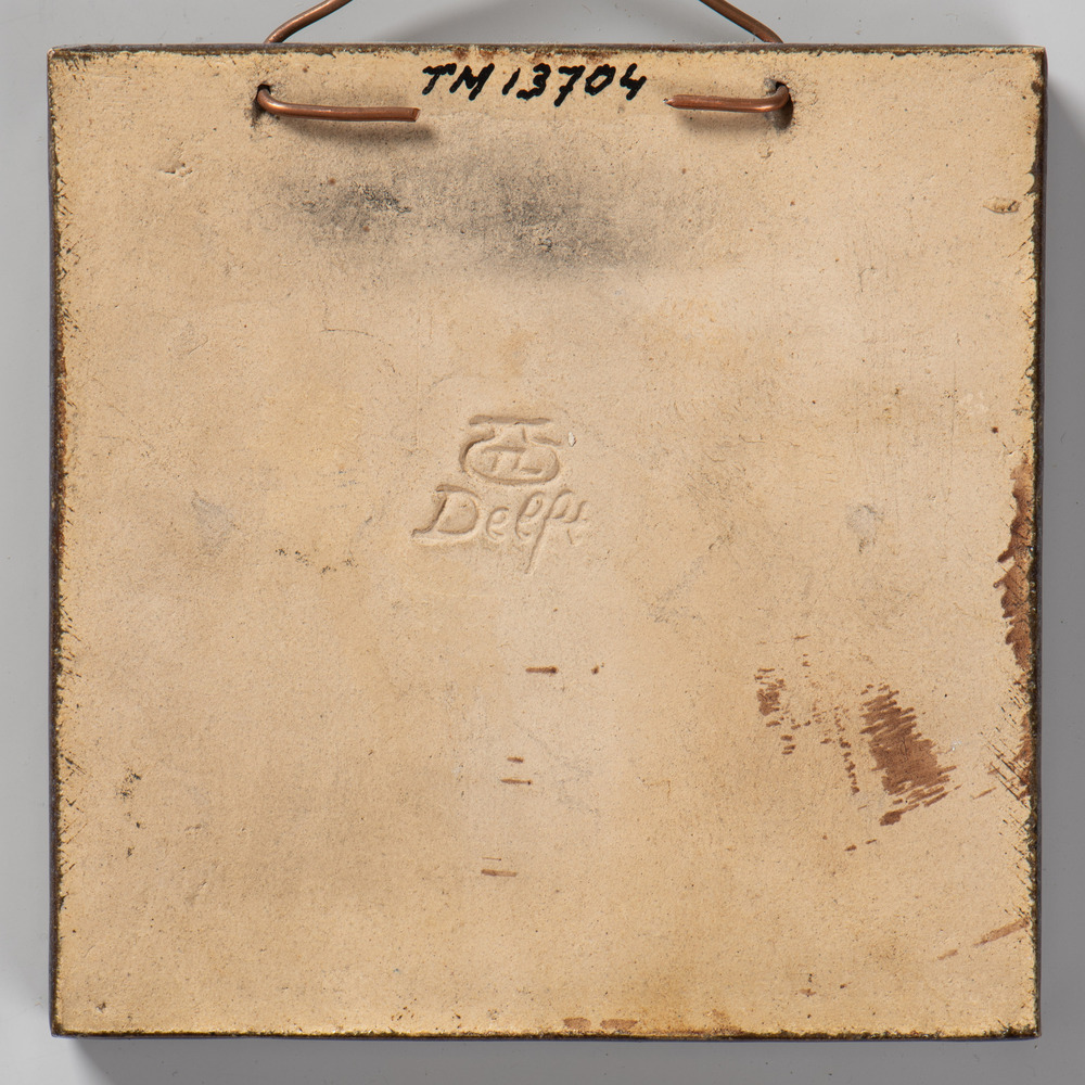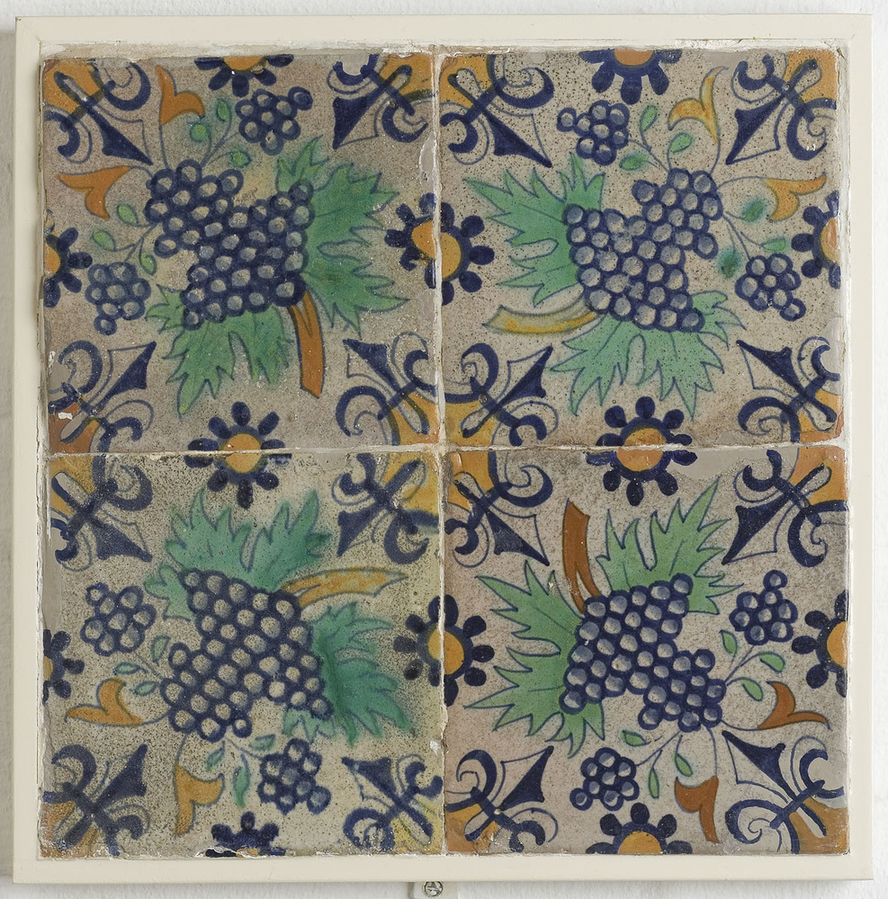randtegel van keramiek met tinglazuur, voorstellende...