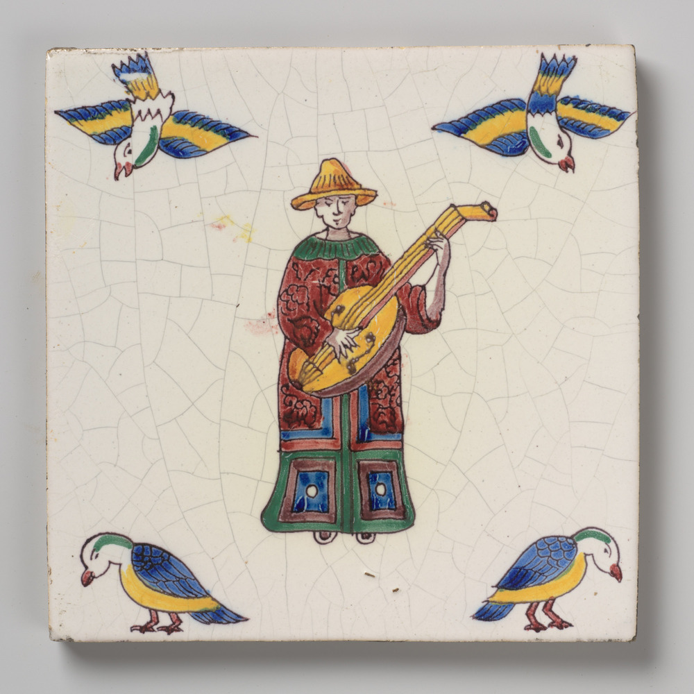 tegel van keramiek met tinglazuur, voorstellende: or...