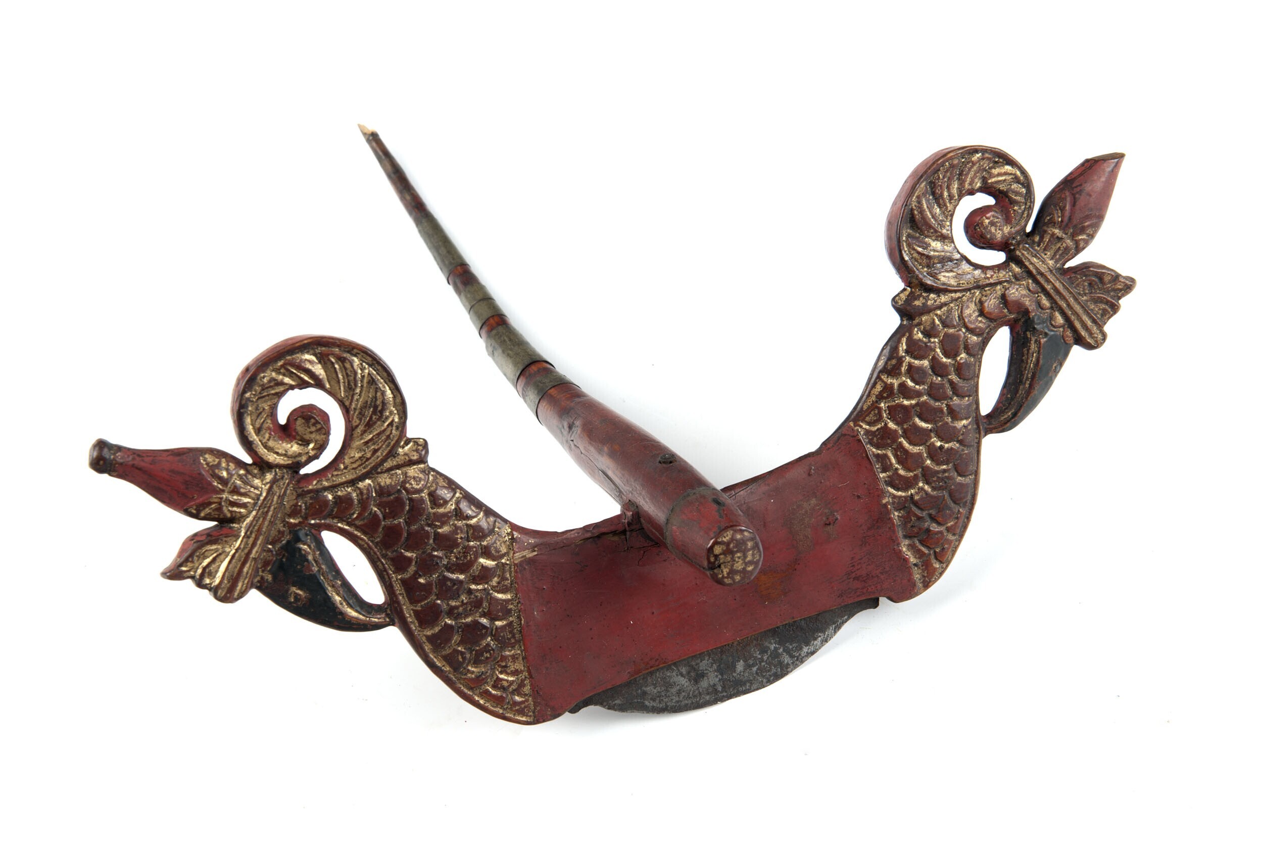 Rijstmes met aan de uiteinden drakenfiguren, zwart e...