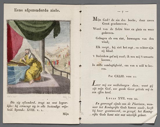 Blad met ingekleurde prent en tekstpagina uit "Het o...
