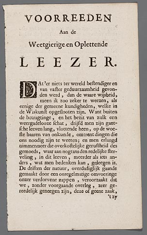 Voorreden aan de weetgierige en oplettende leezer, V...