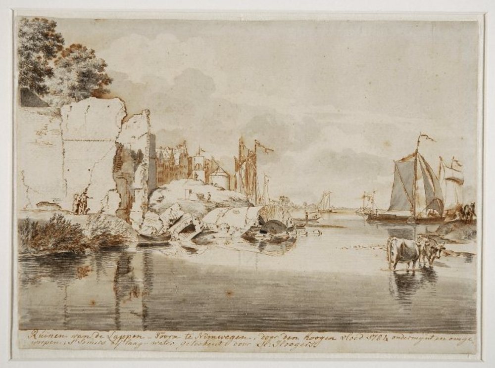 Ruïne van de Lappentoren met doorkijk op de Waalkade