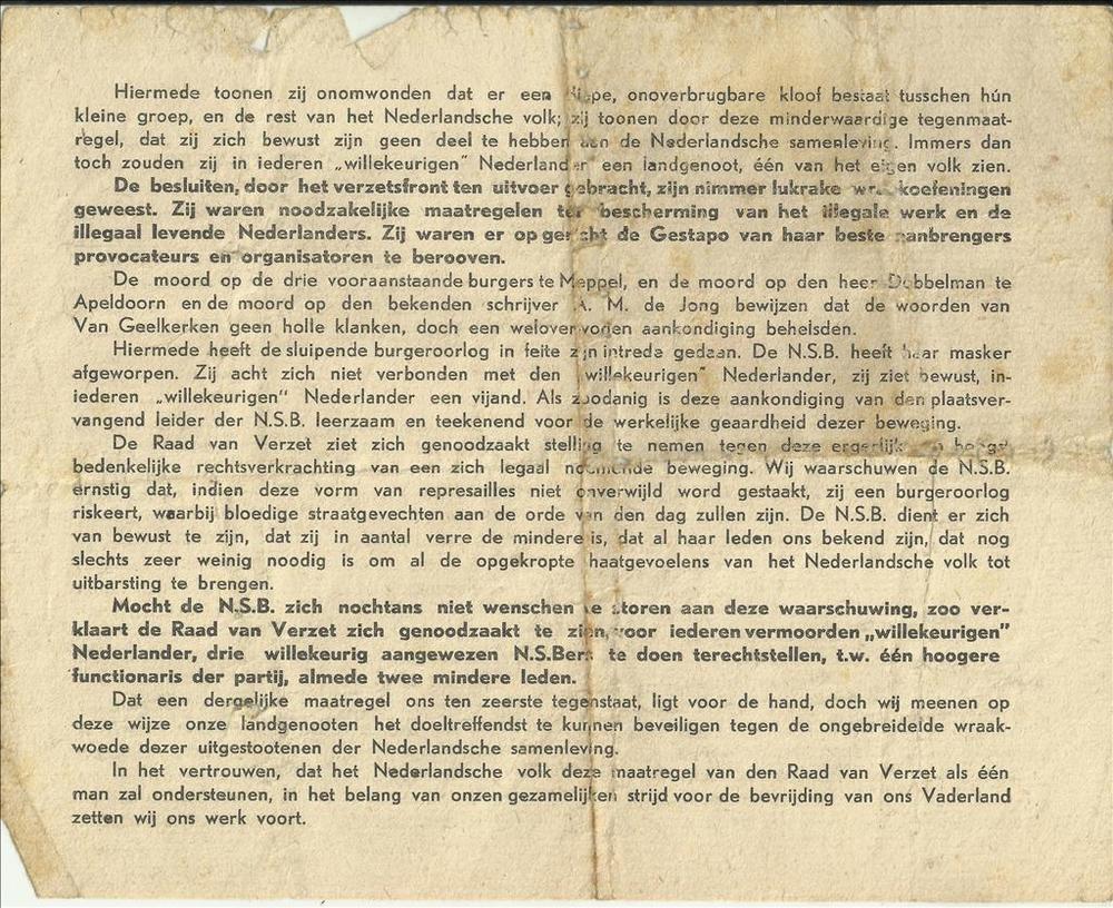 Proclamatie van de Raad Van Verzet in het Koninkrijk...