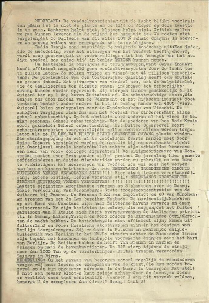 Algemeen Nederlandsch Persbureau, mededelingen, 22 m...