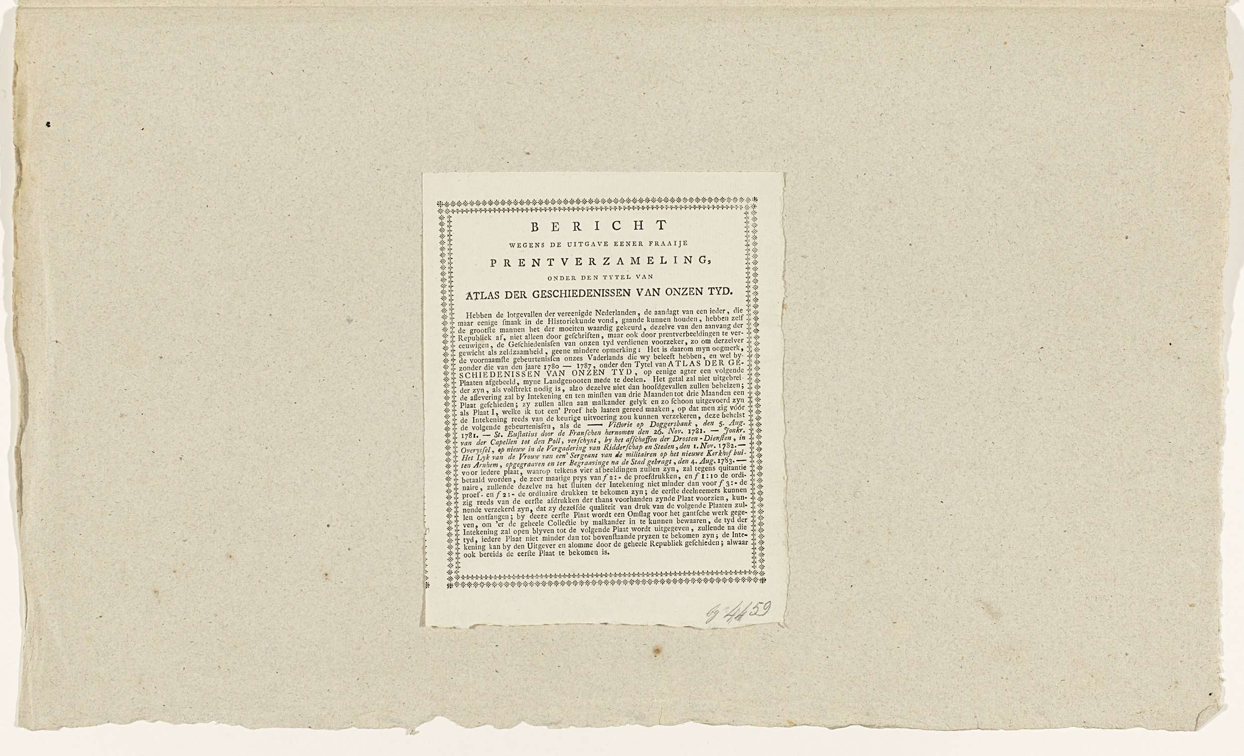Omslag voor de proefaflevering van de Atlas der Gesc...