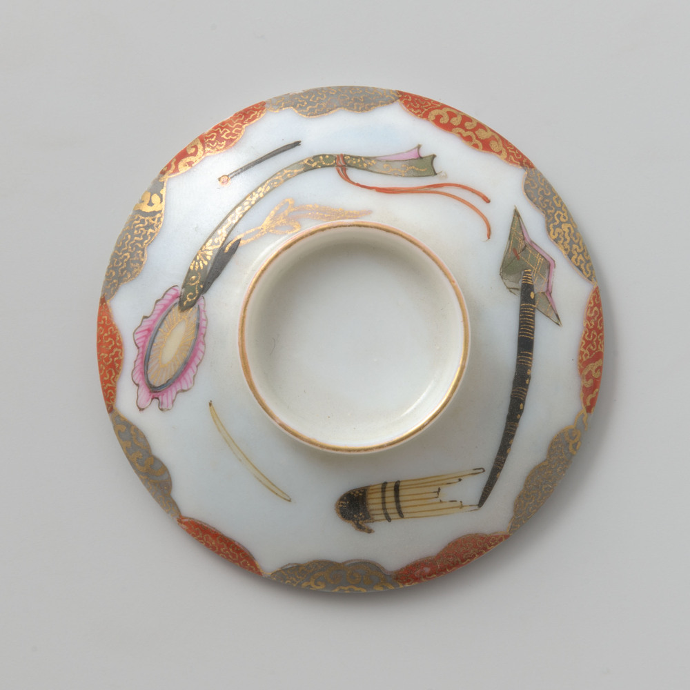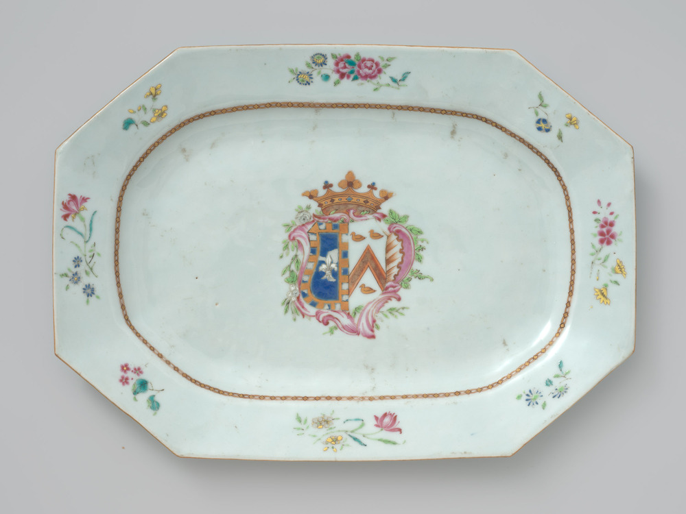 Porseleinen schotel met het familiewapen Crommelin