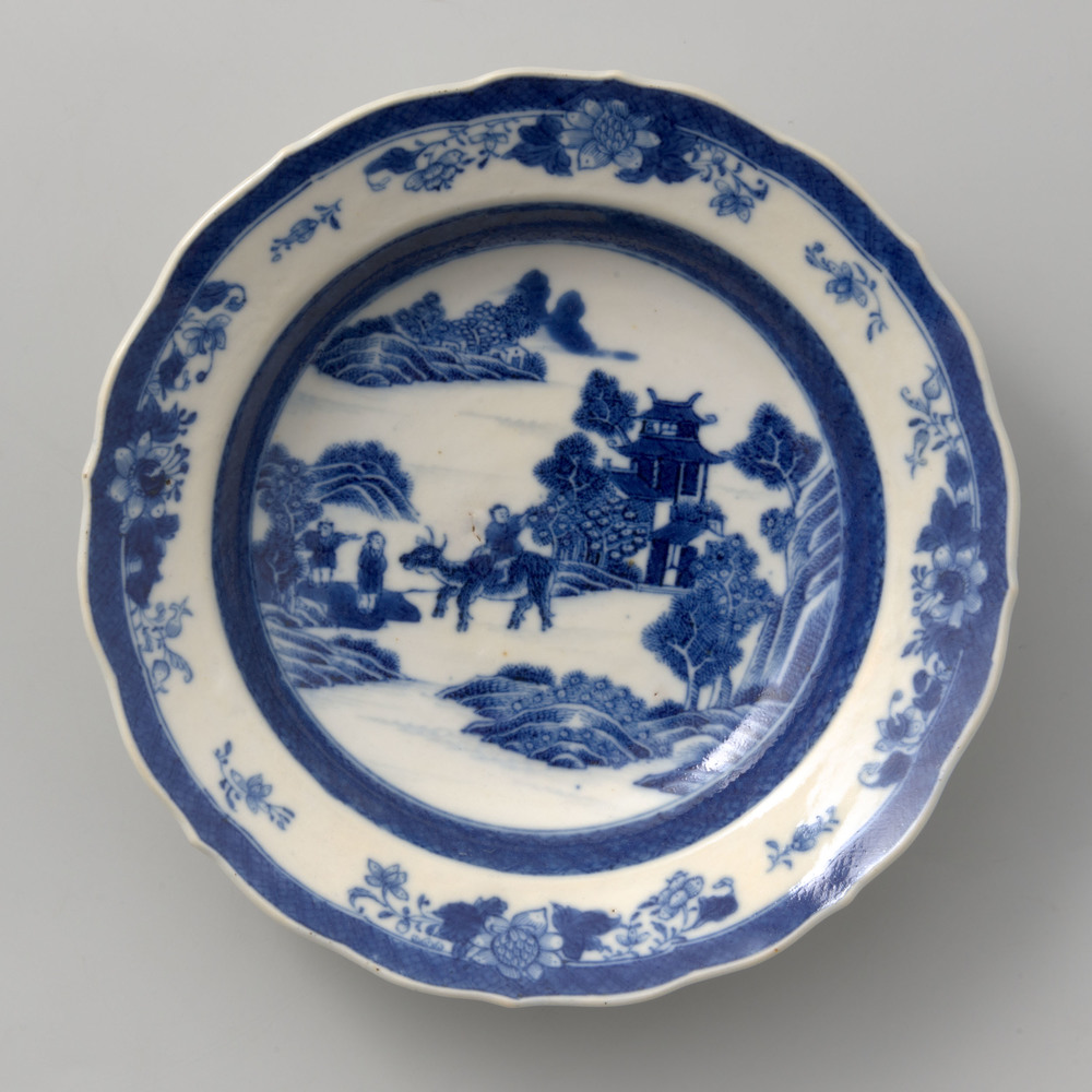 Diep bord behorende tot een Chinees blauw eetservies