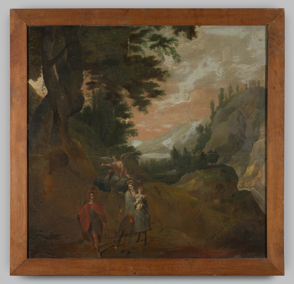 Maria en Jozef met Christuskind in een landschap