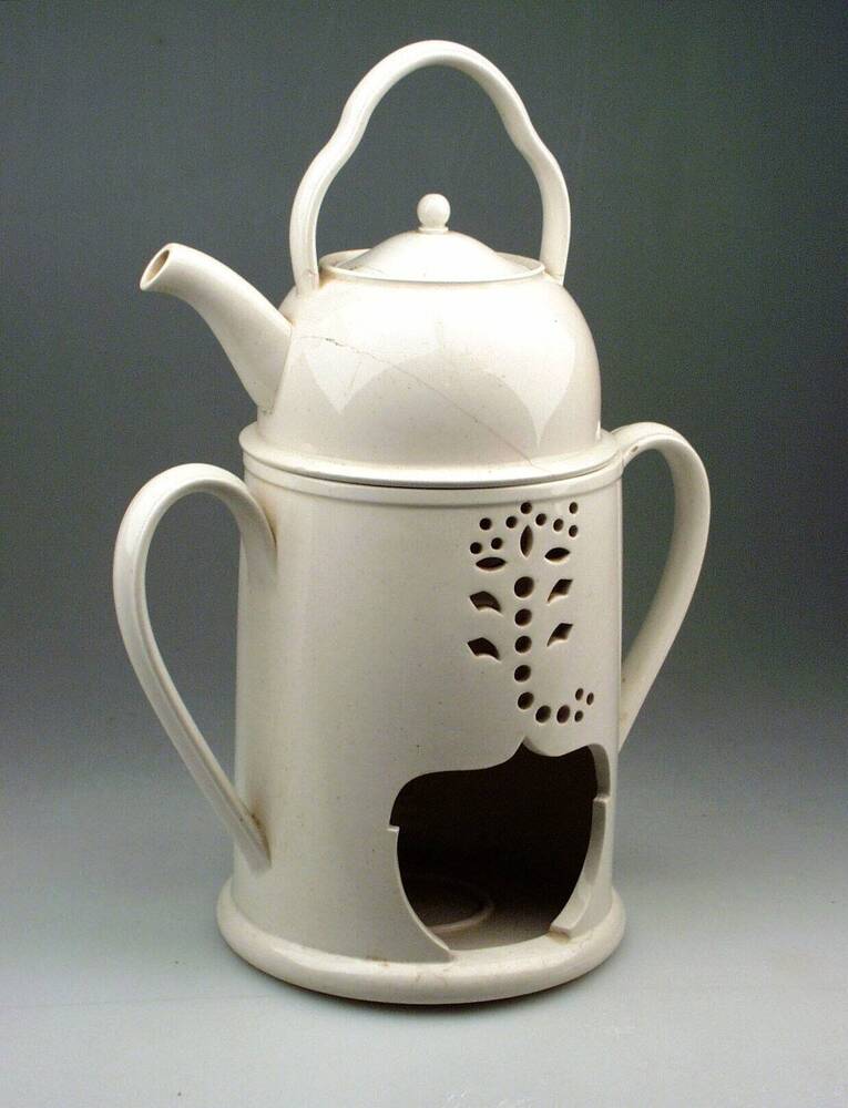 Theestoof met geribbelde houten buitenzijde
