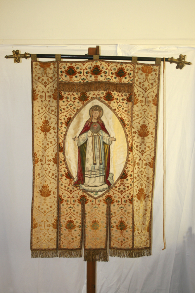 Vaandel van fluweel voorstellende H. Hart gebruikt i...