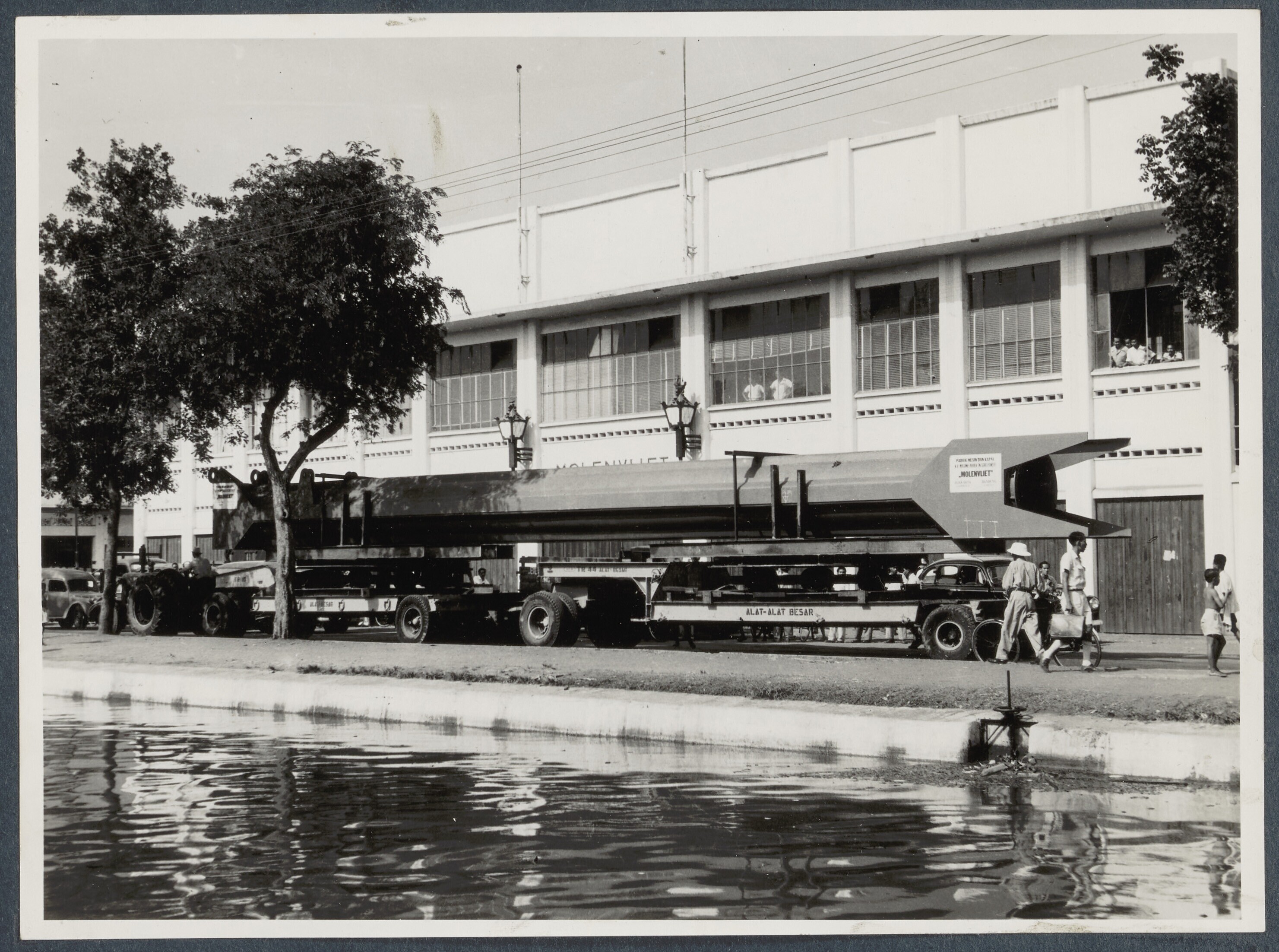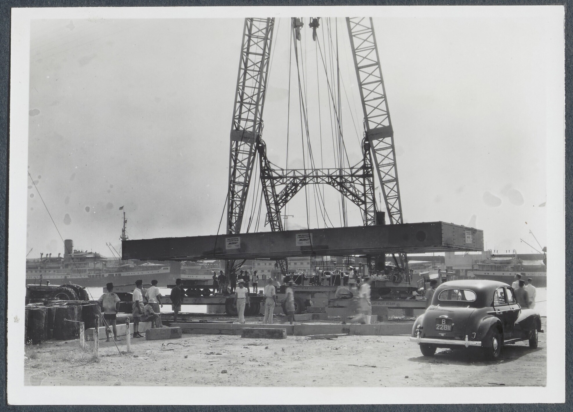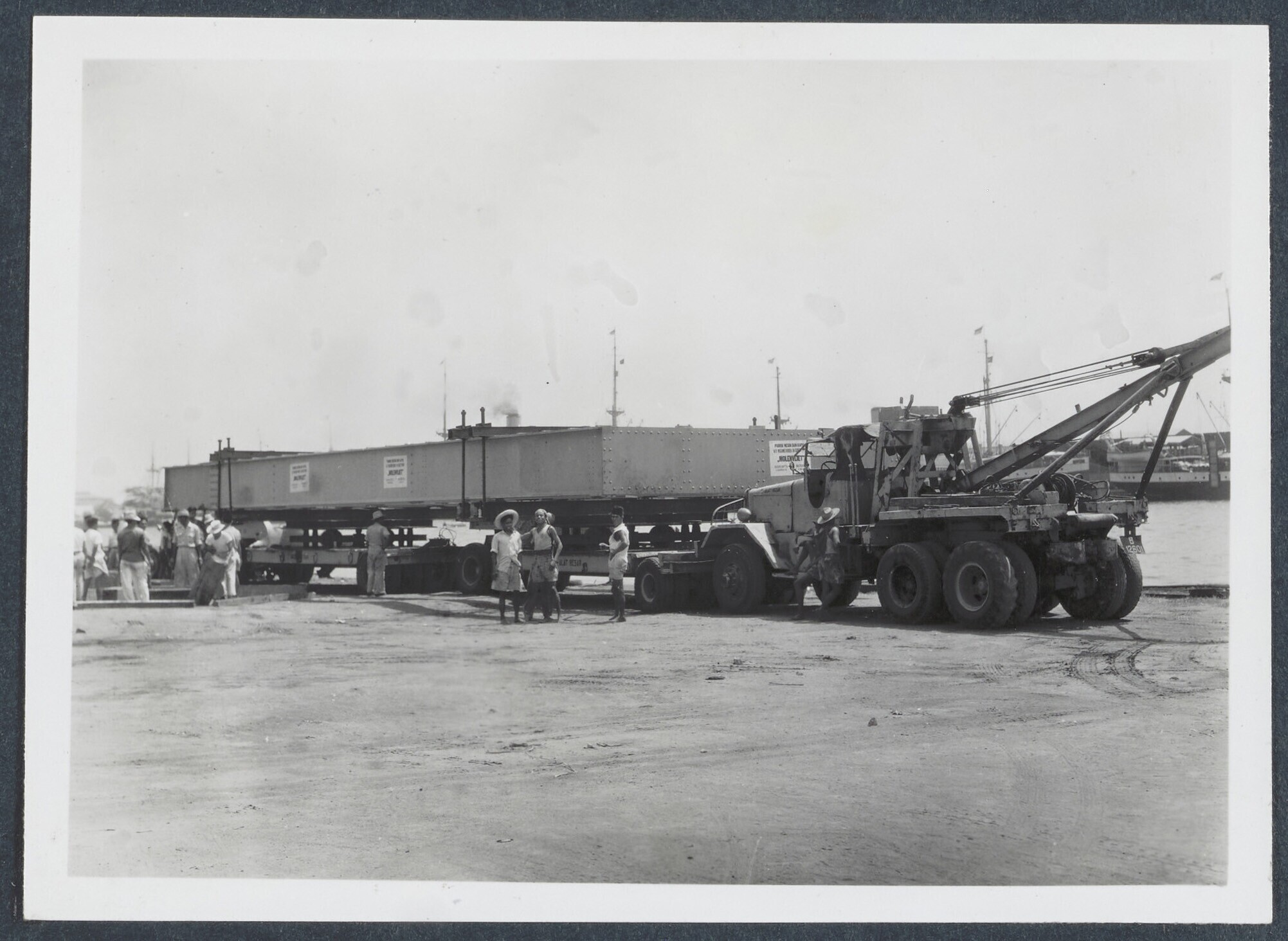 Transport van stalen brugdeel te Tanjung Priok