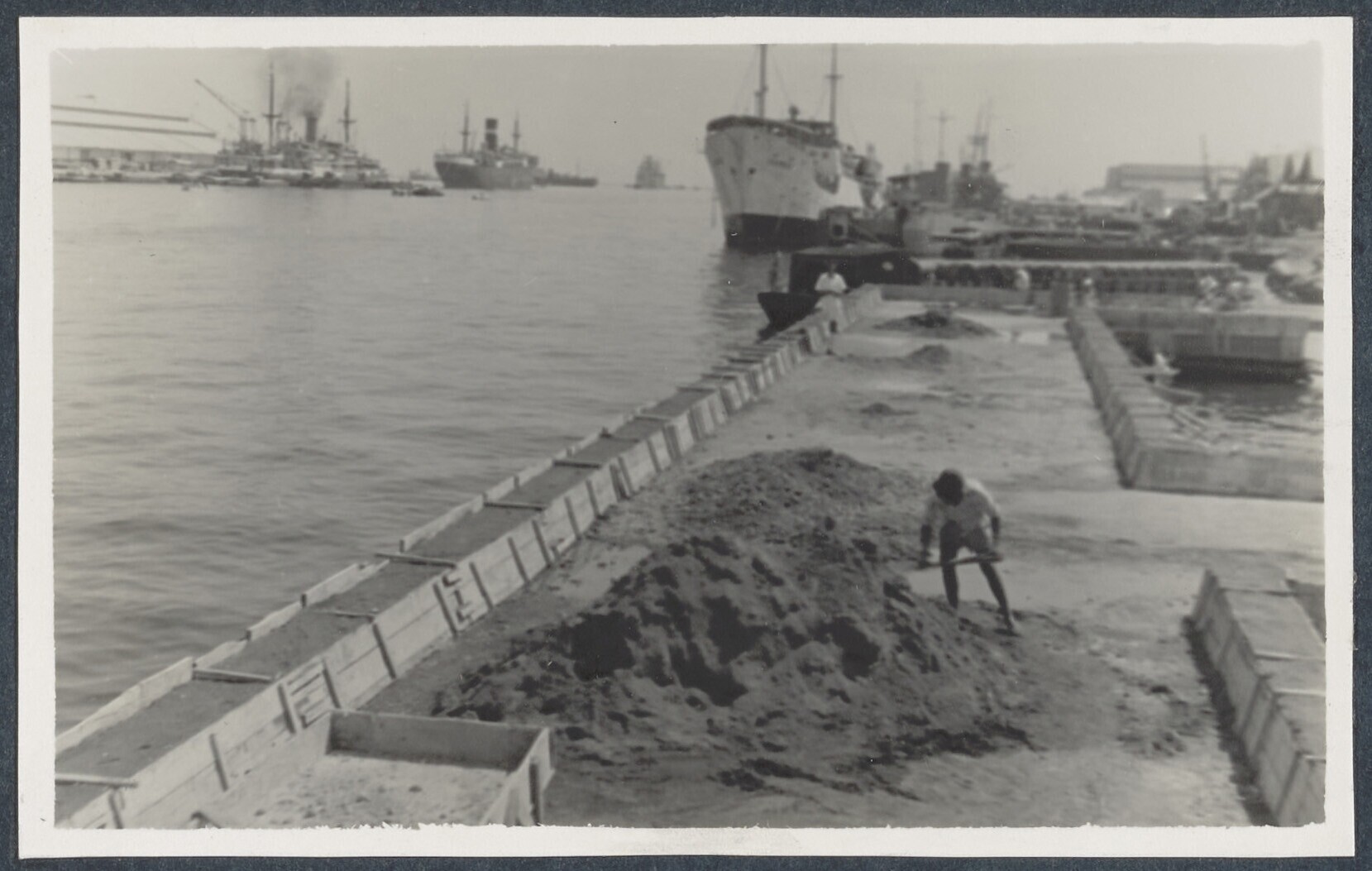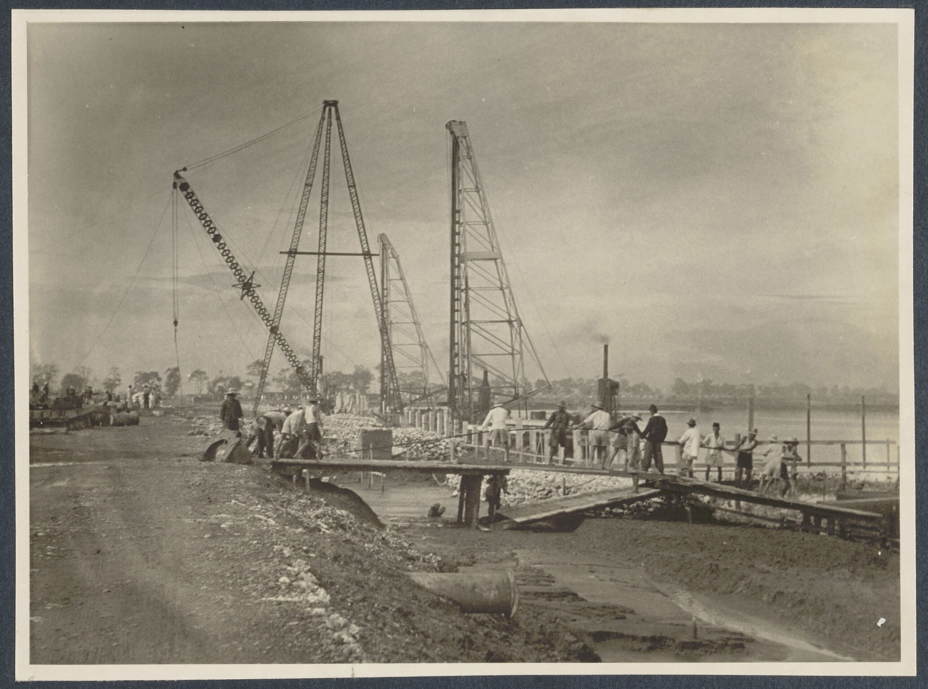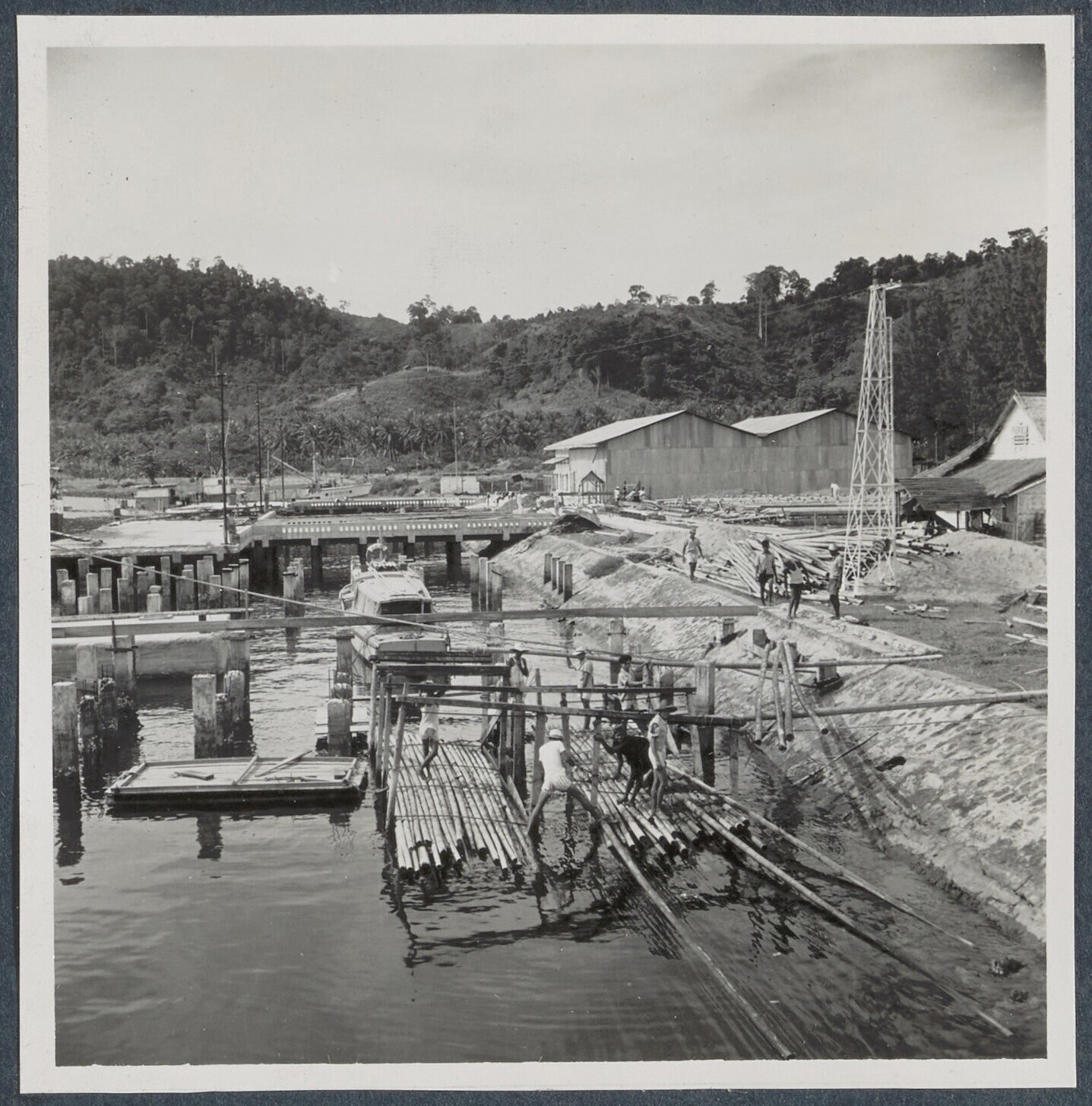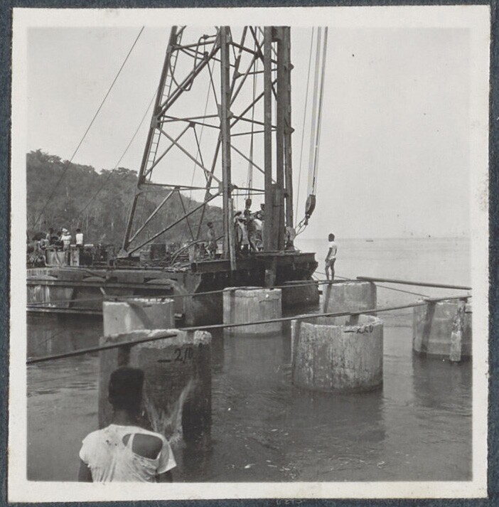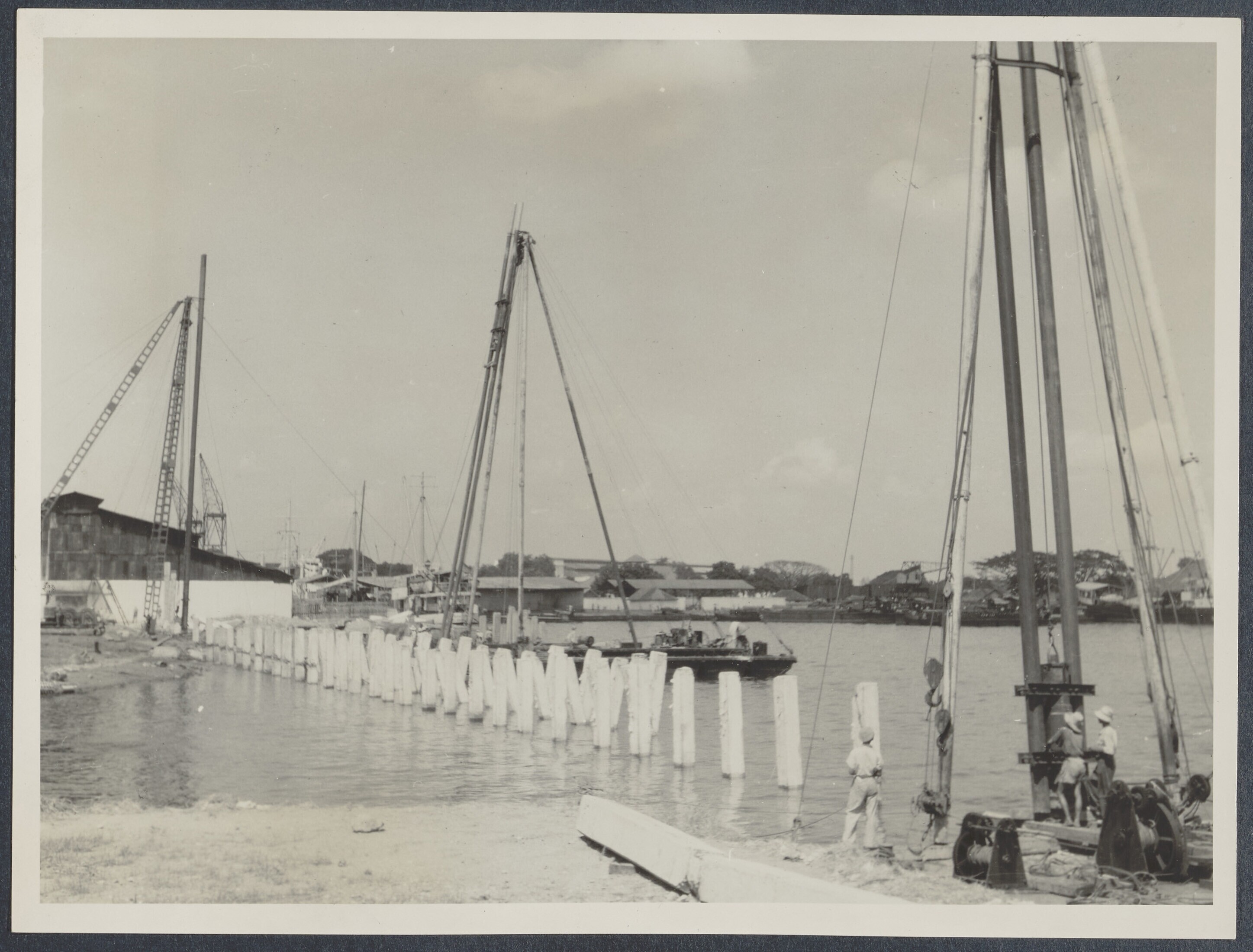 Werkzaamheden aan loods en kade te Palembang