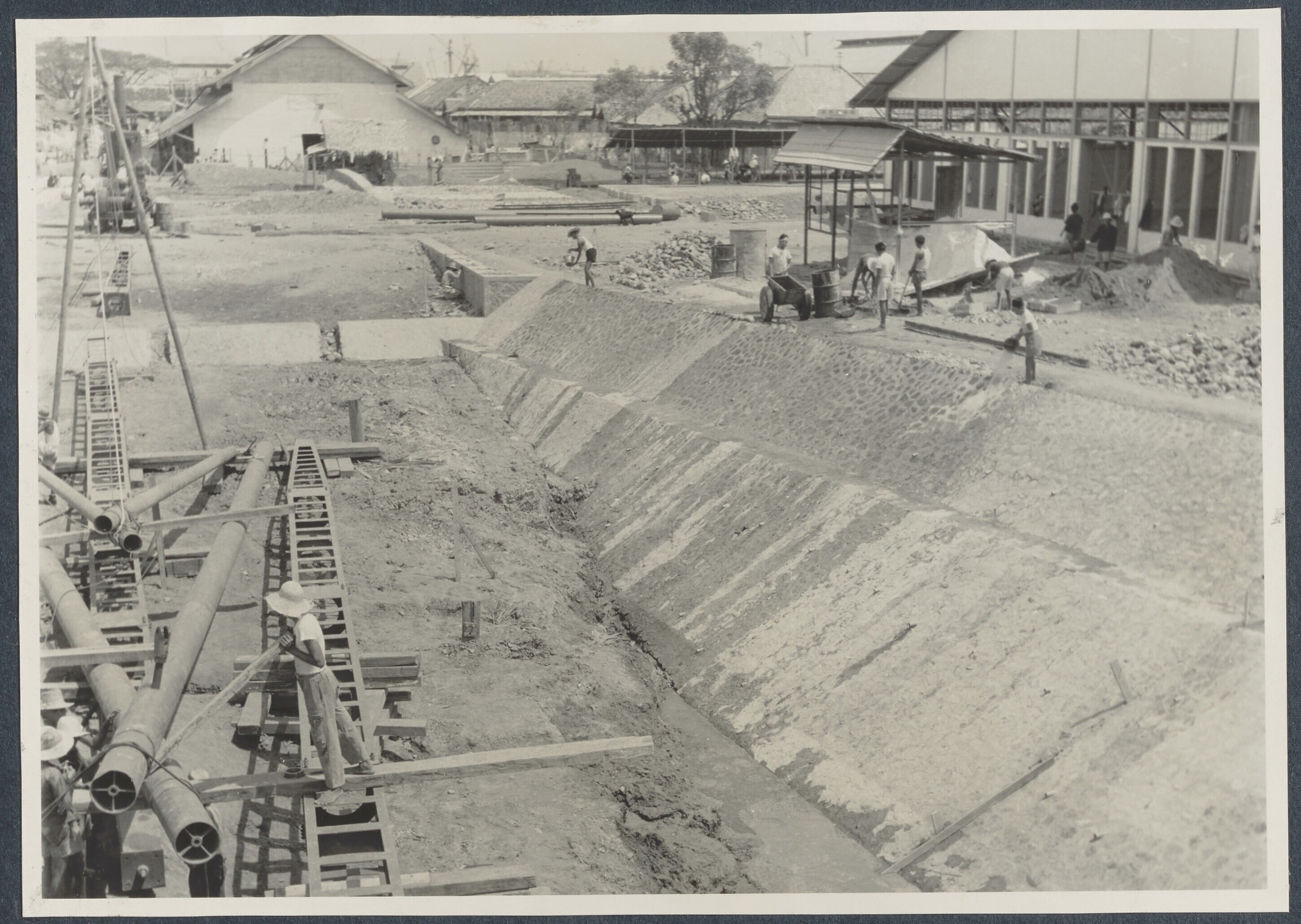 Bouw van een scheepshelling aan het Kodjakanaal te T...