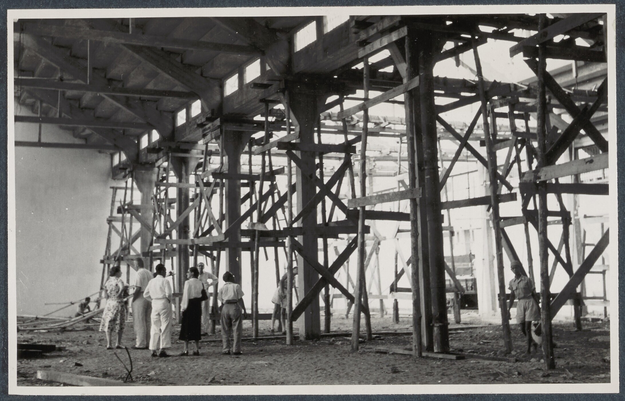 Bouw van loods uit teakhout