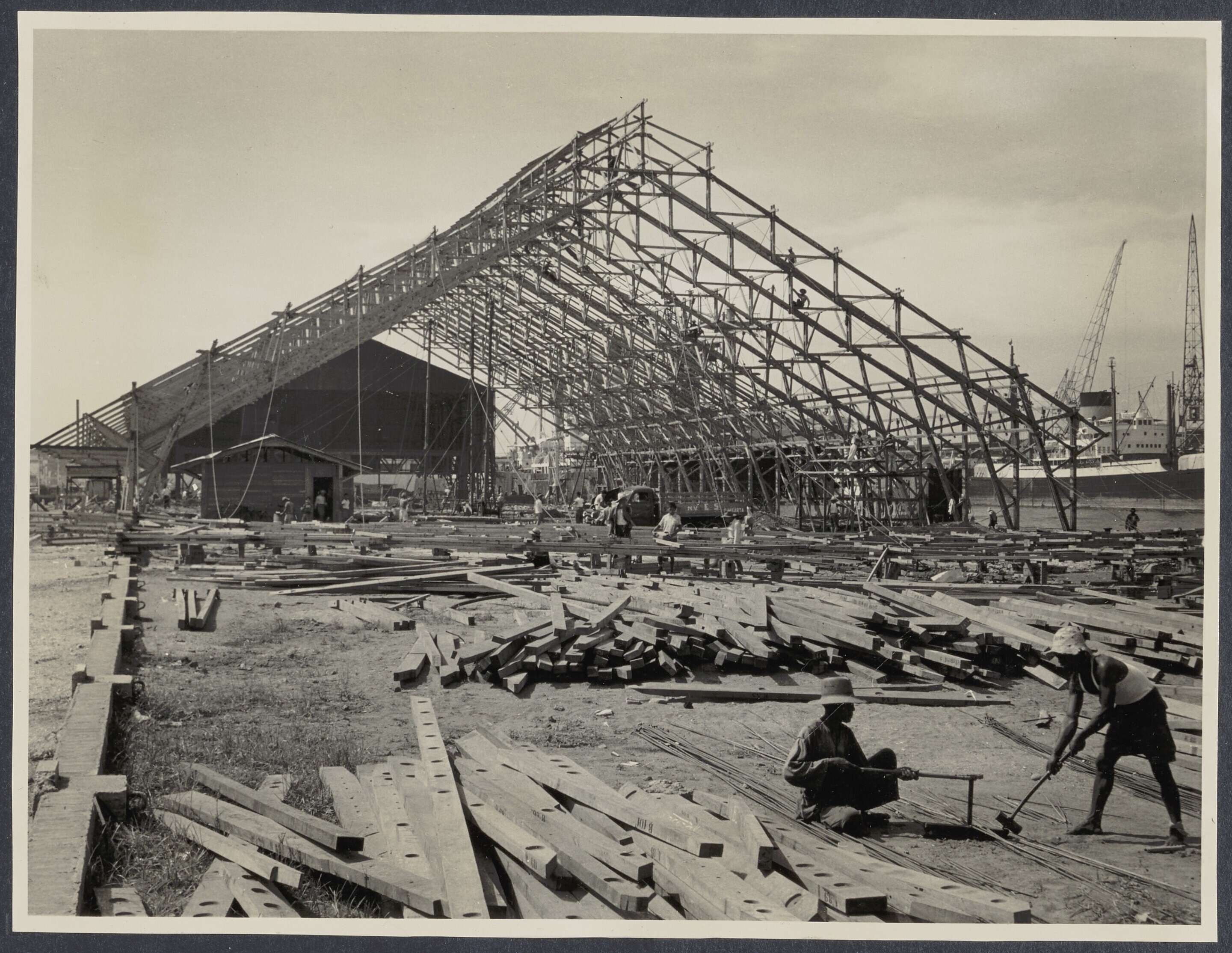 Bouw van loods op de Hollandpier te Surabaya