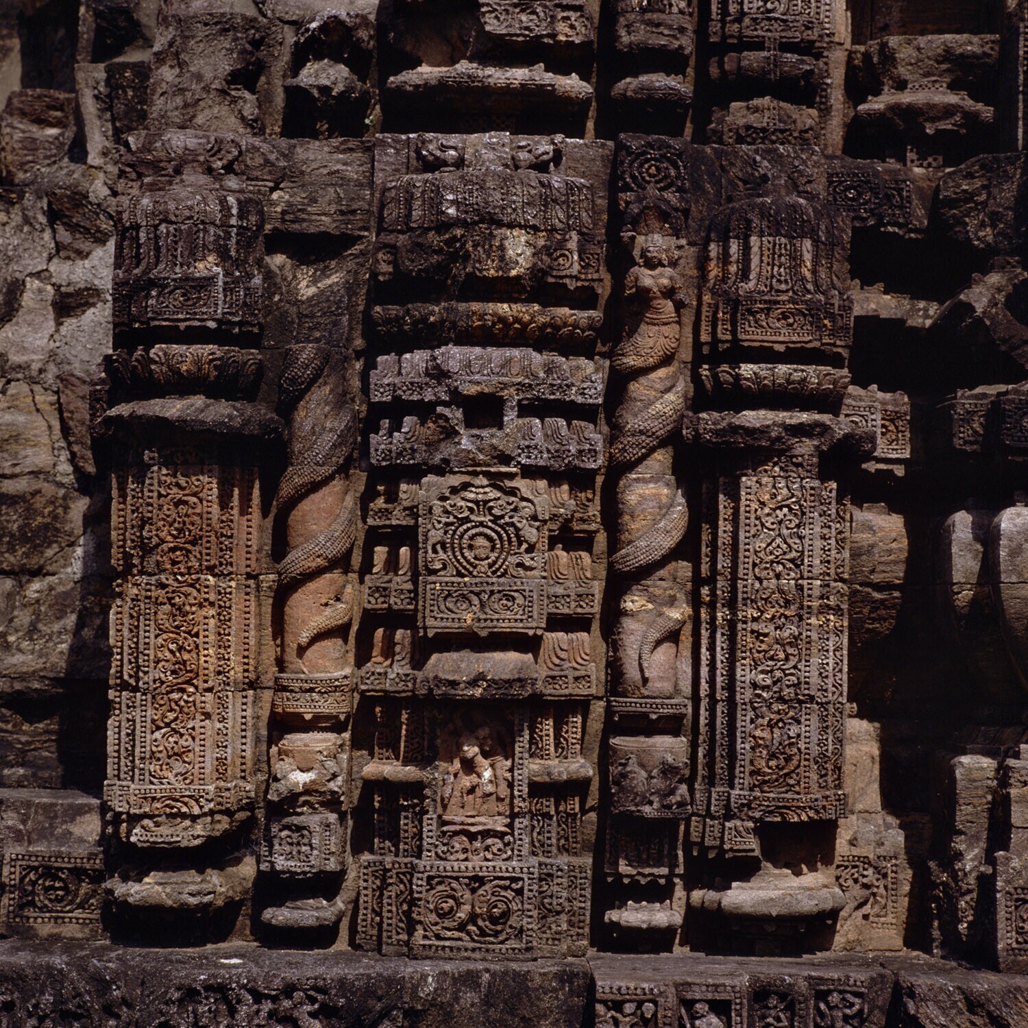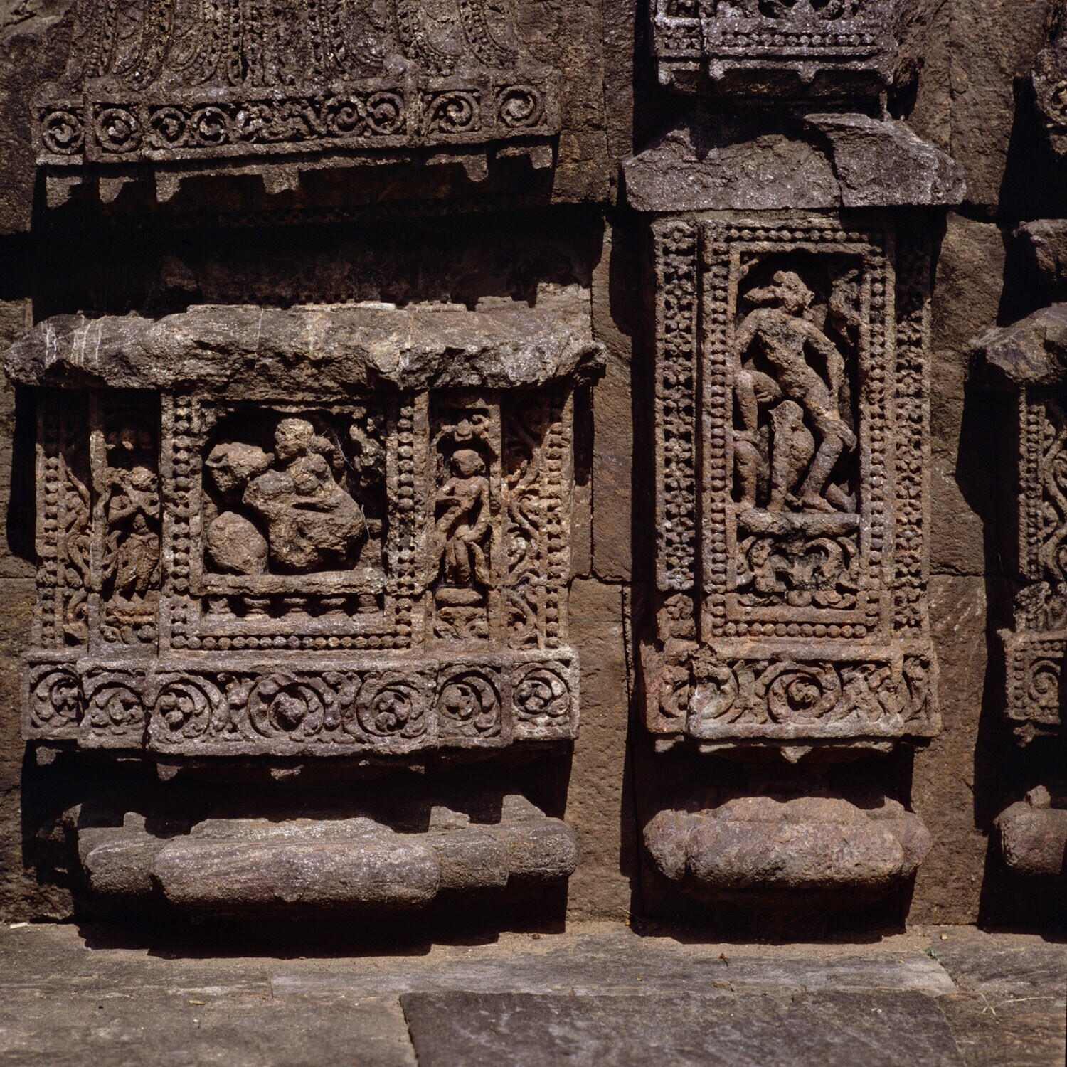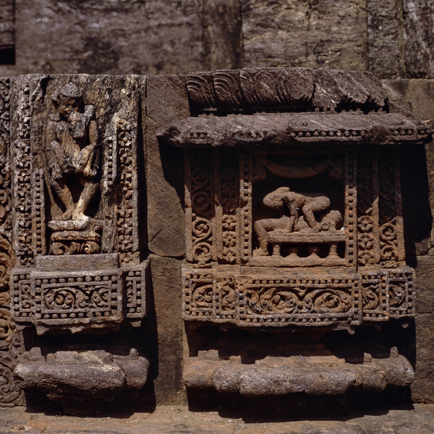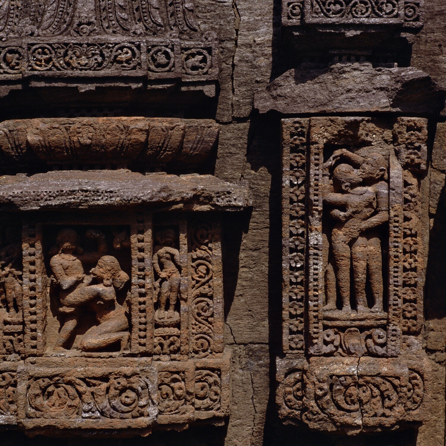 Details van de zonnetempel van Konarak met erotische...