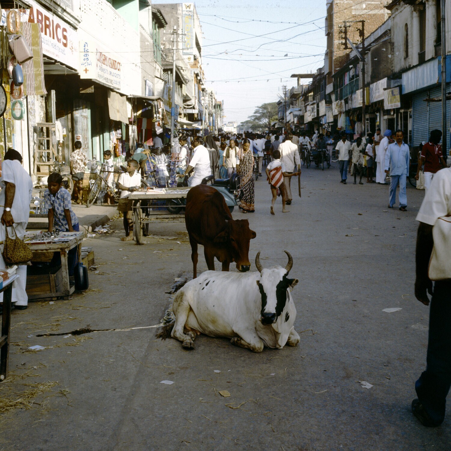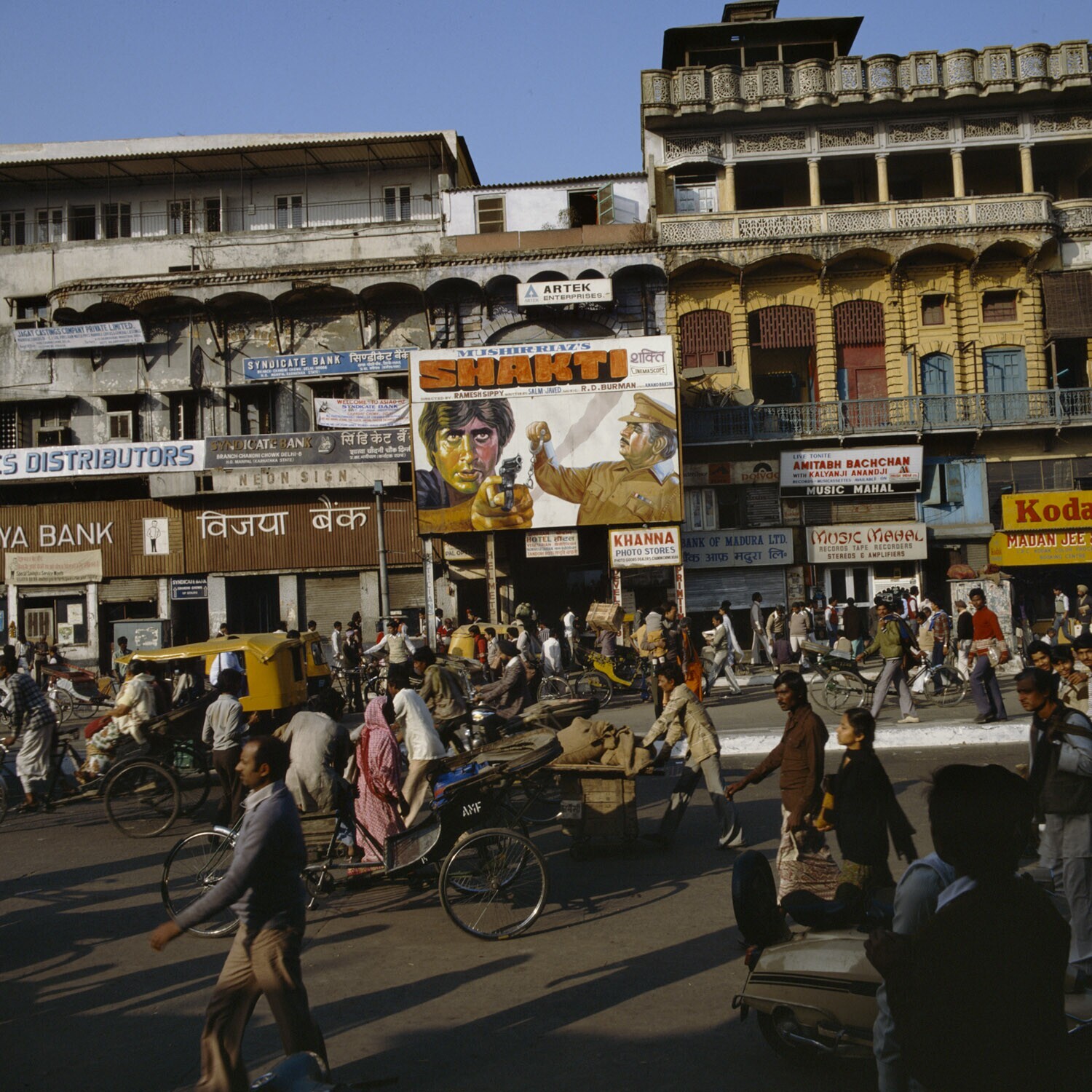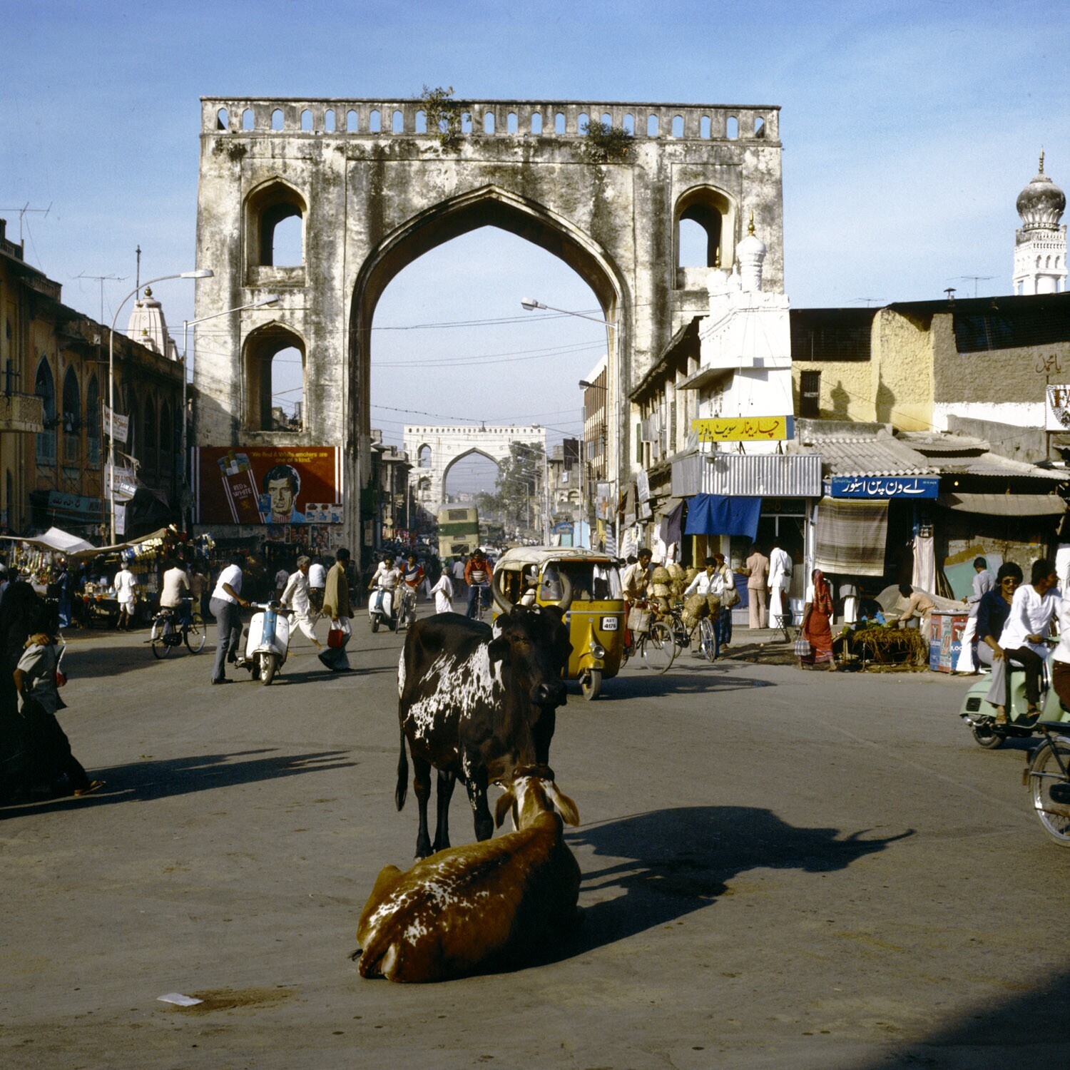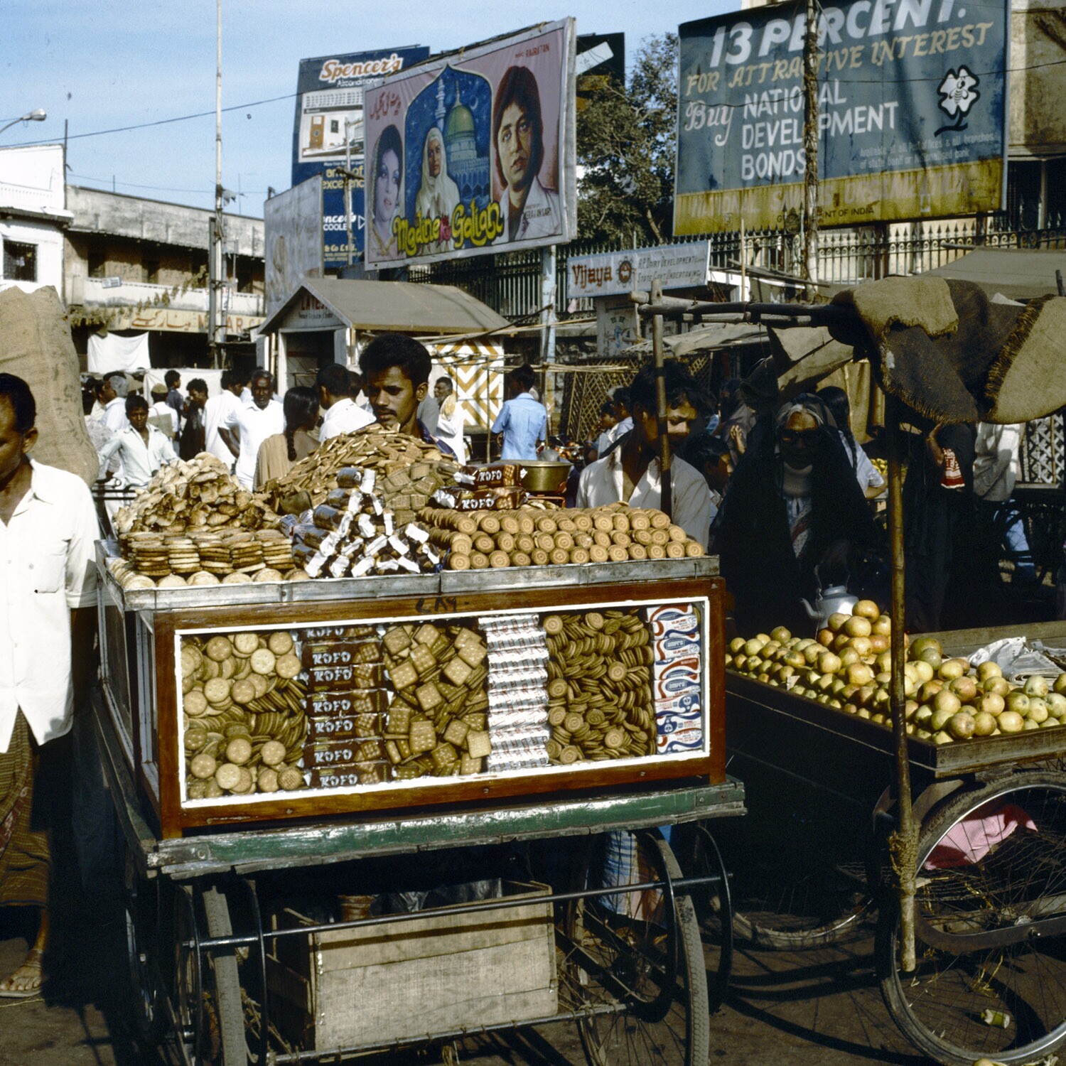 Straatbeeld in Madras met enorme reclameborden