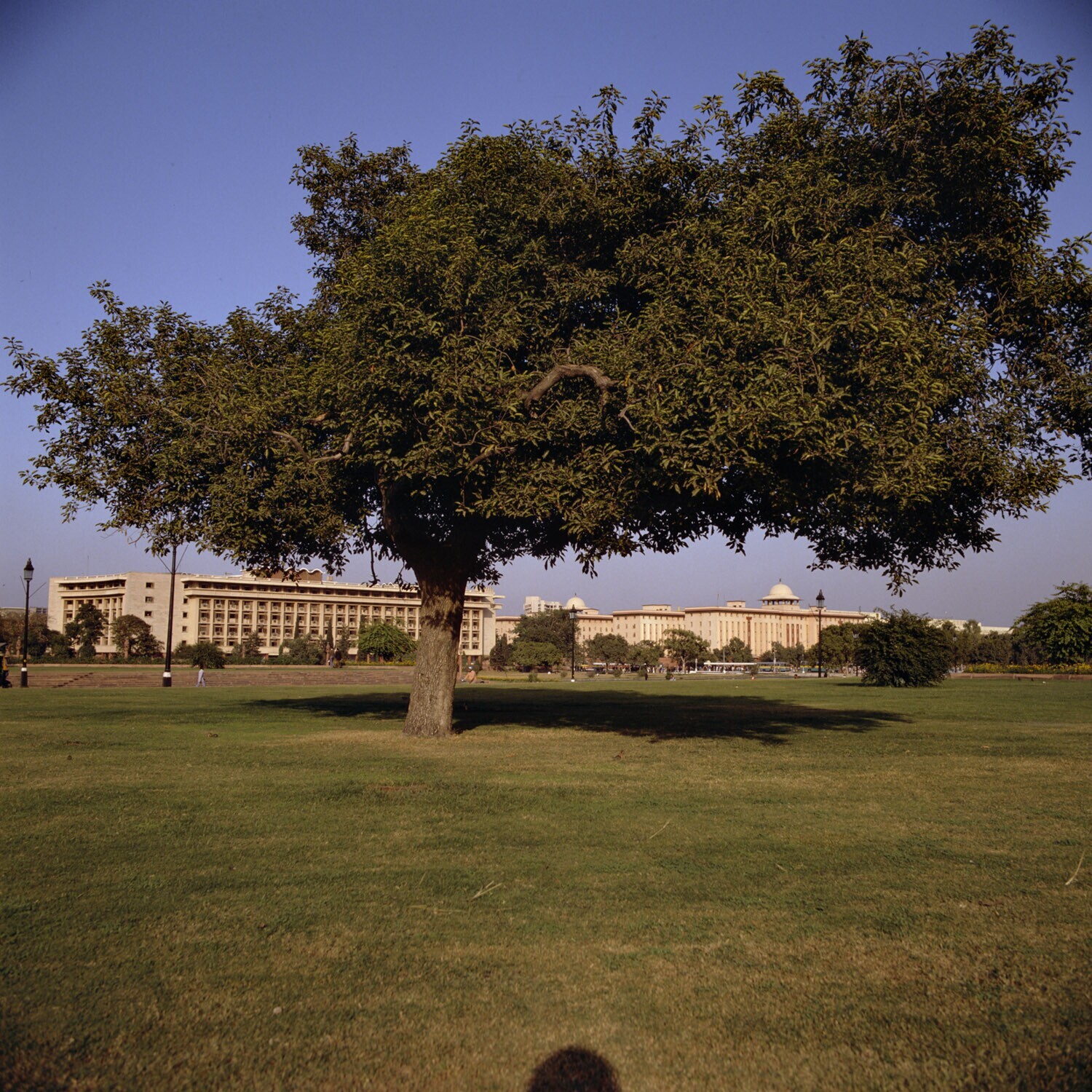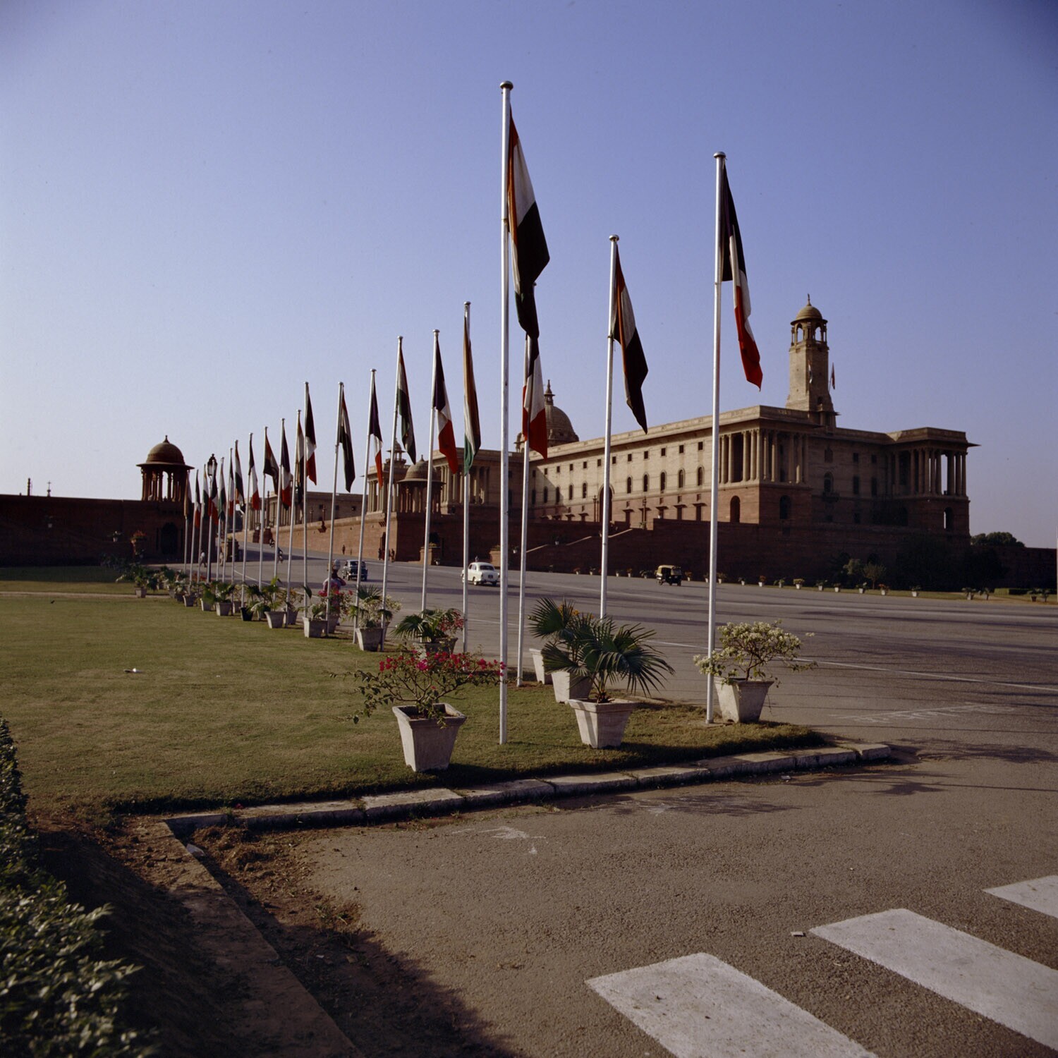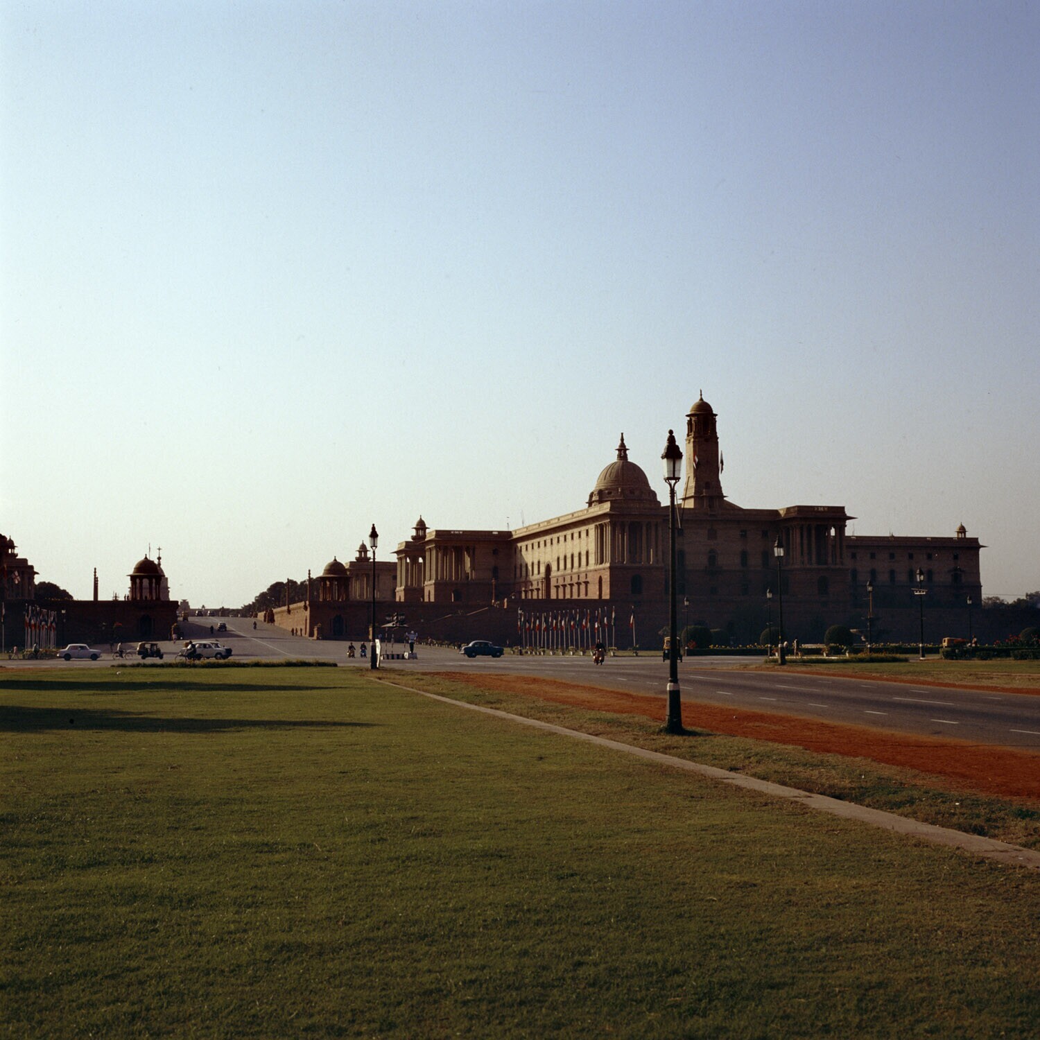 Het Parlementsgebouw van New Delhi in de avondzon
