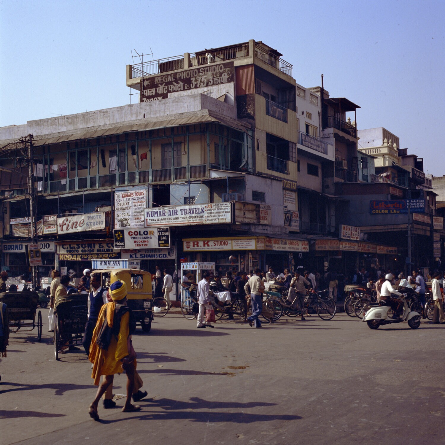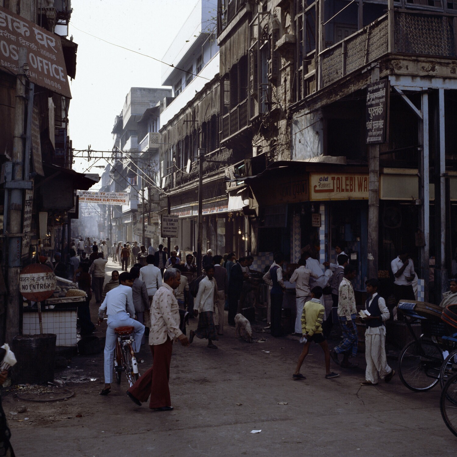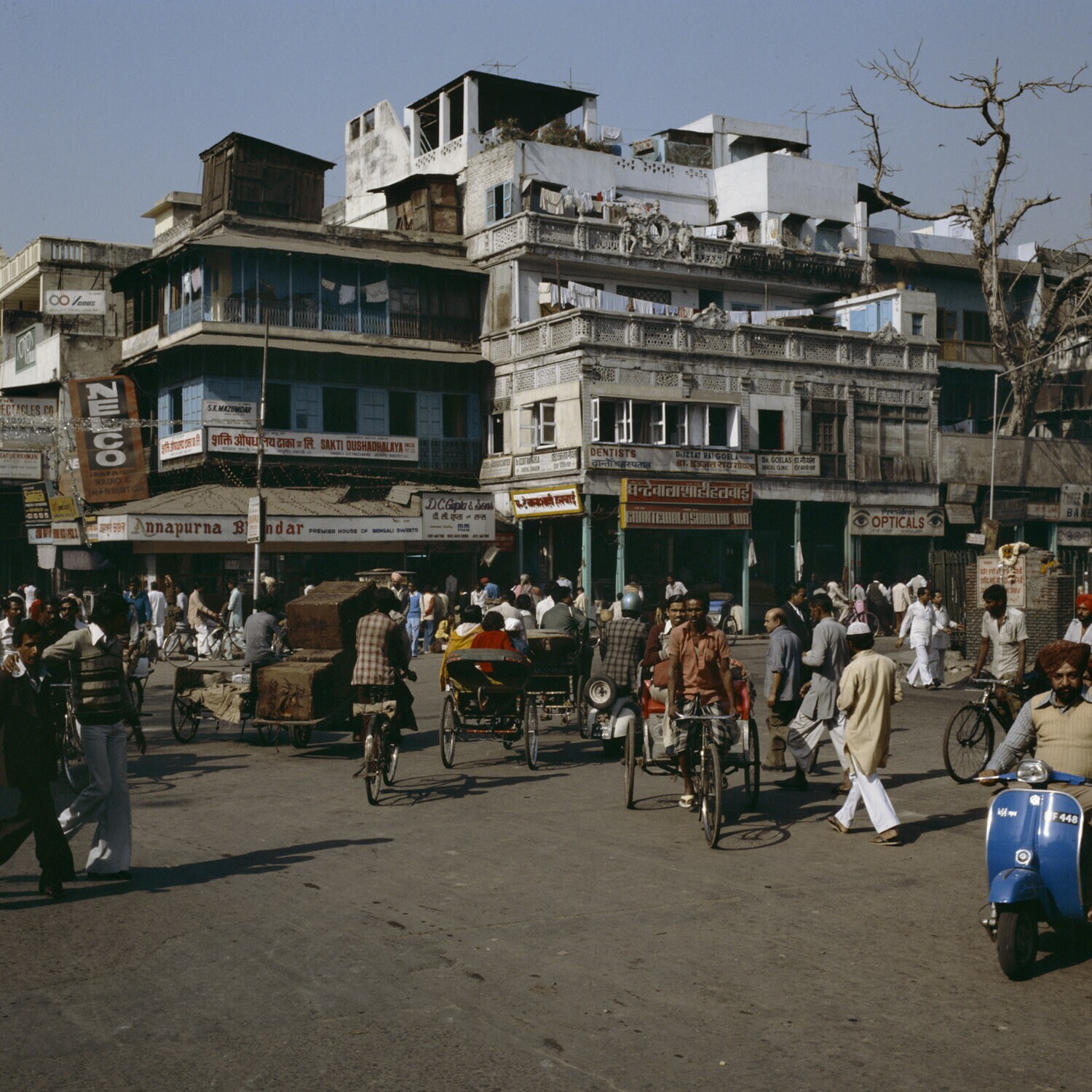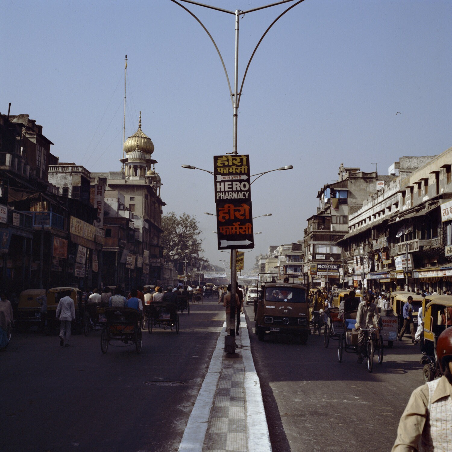 Stadsbeeld met veel verkeer in de Chandi Chowk van N...
