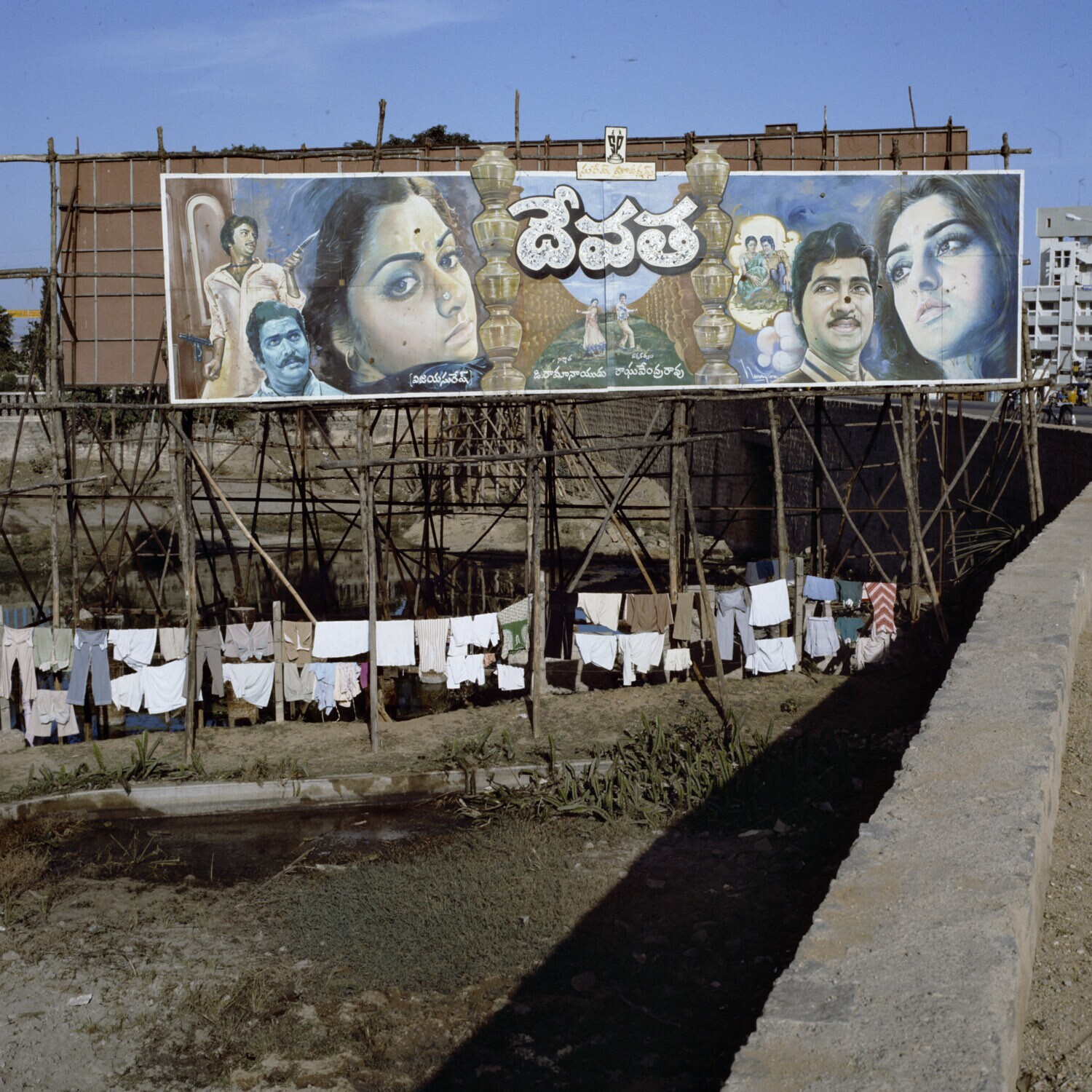 Enorme bioscoopreclame langs de weg in Hyderabad/Sec...