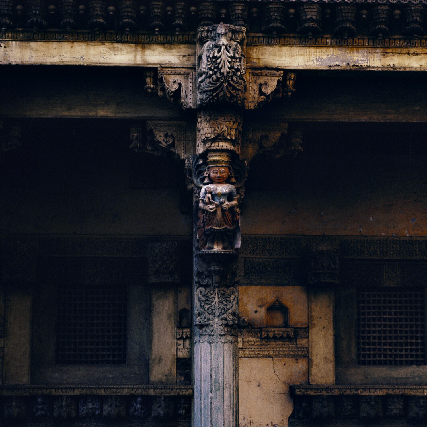 Een godenbeeld op een pilaar in net tempelcomplex va...