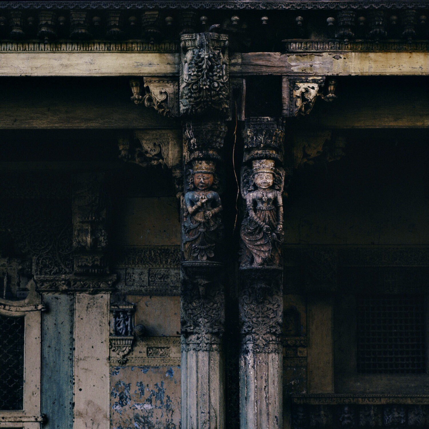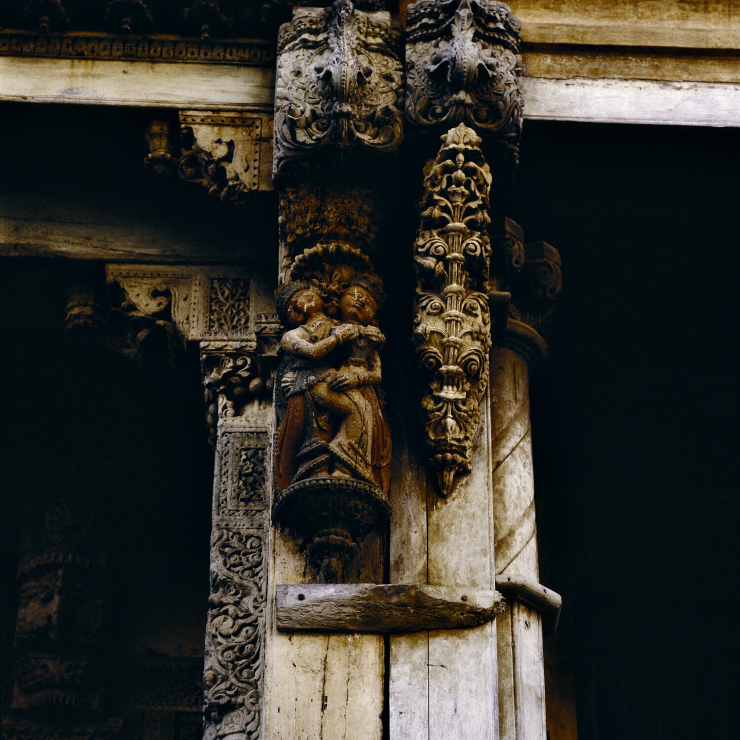 Houtsnijwerk aan een paal bij een woning te Boroda D...