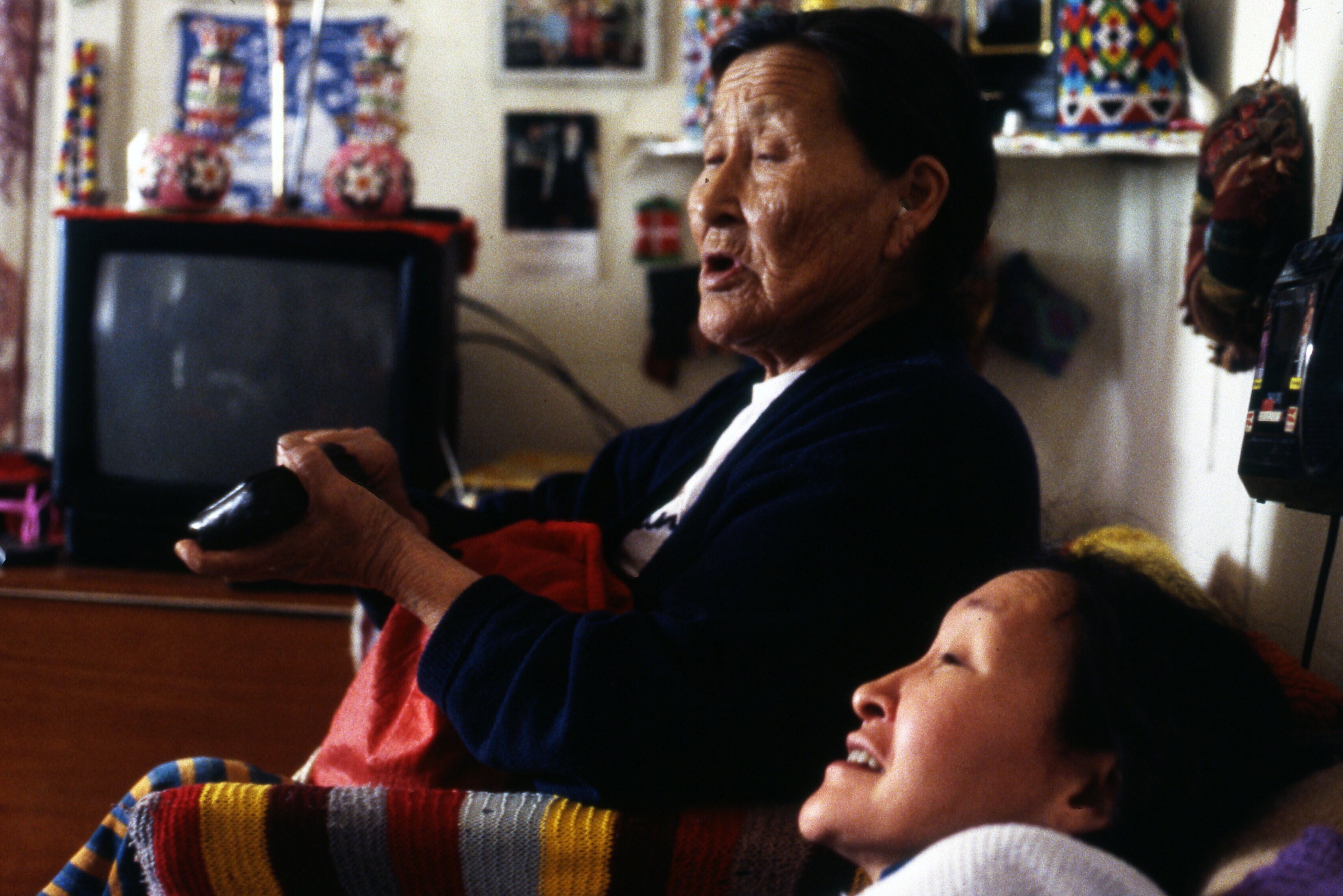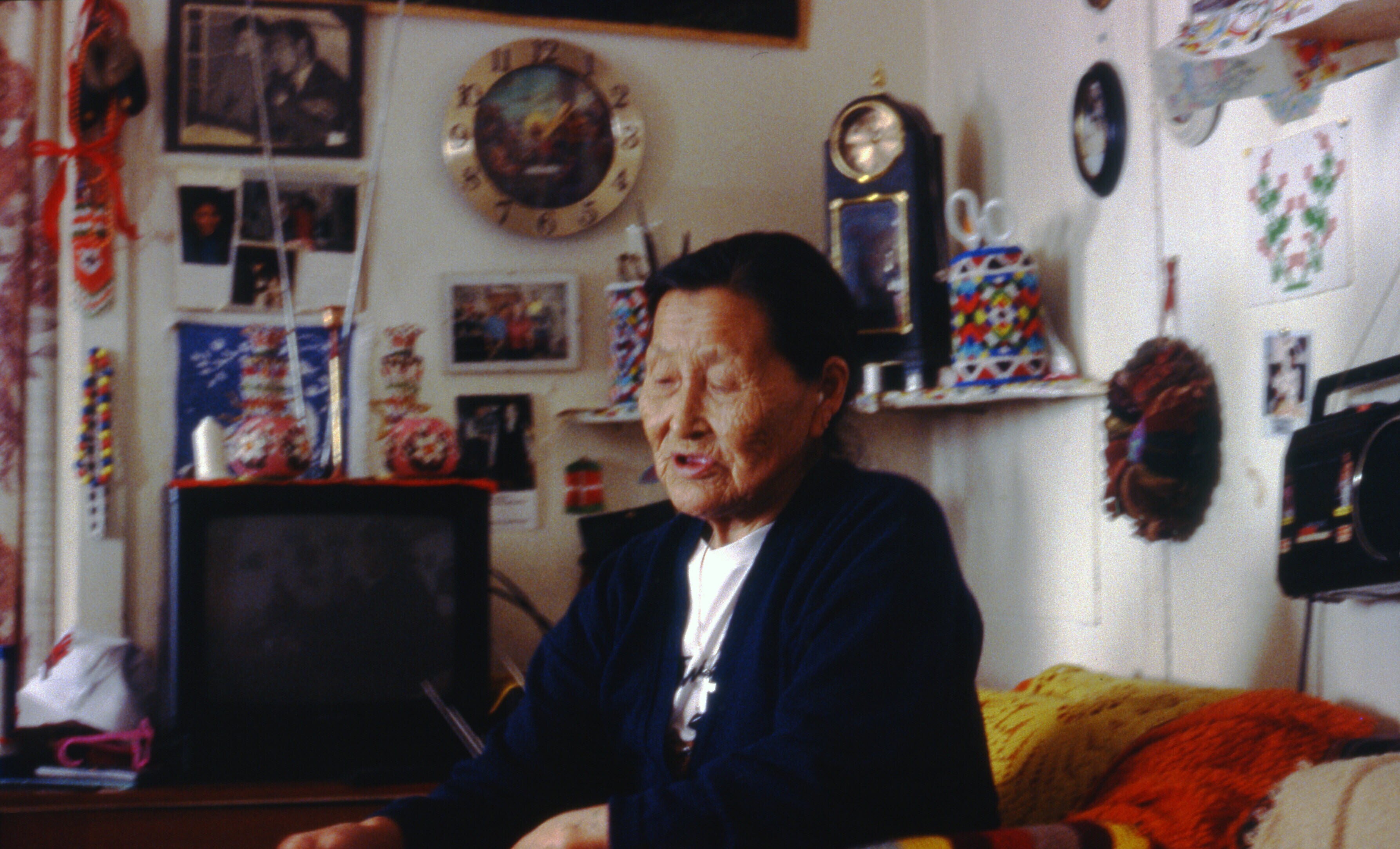 Inuit vrouw, Ane Nakinge, vertelt in haar huis in Ti...