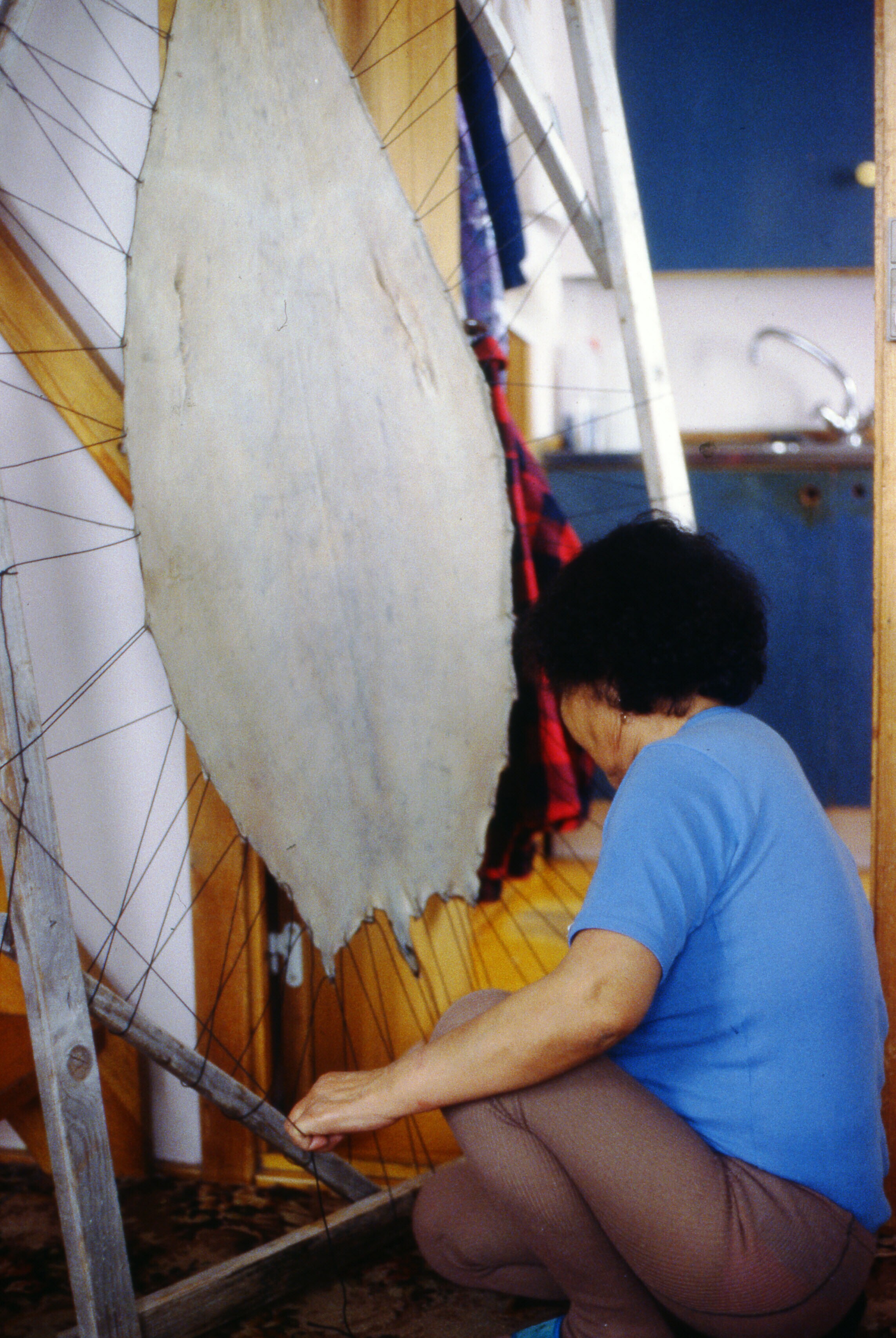 Asta Jonathansen spant een zeehondehuid op in een da...
