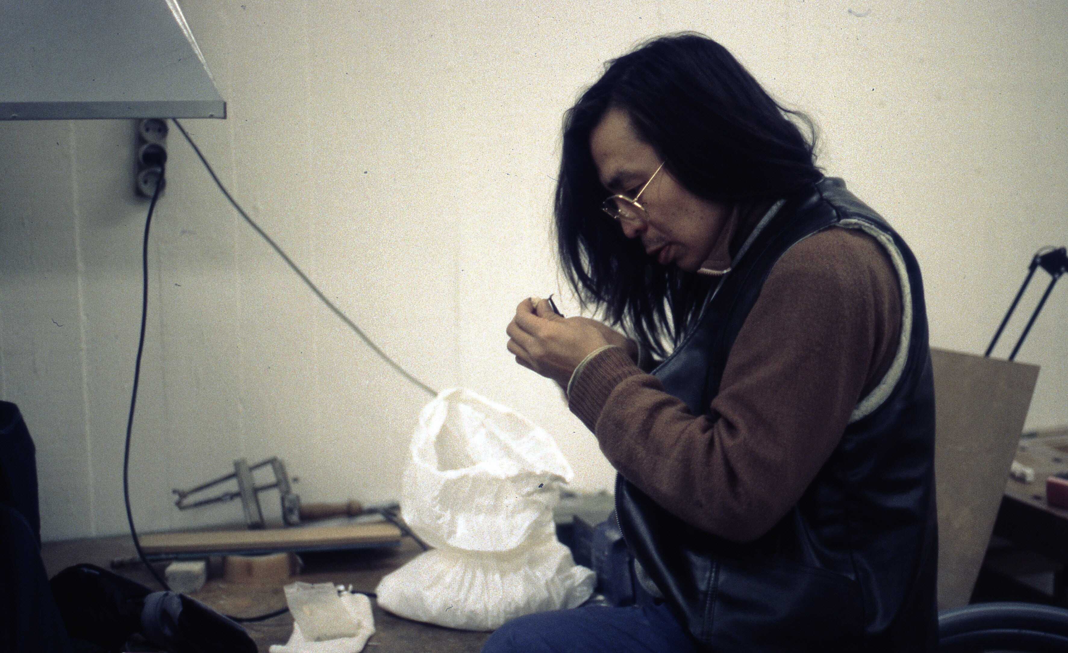 Inuit kunstenaar Per Brodersen aan het werk in een o...