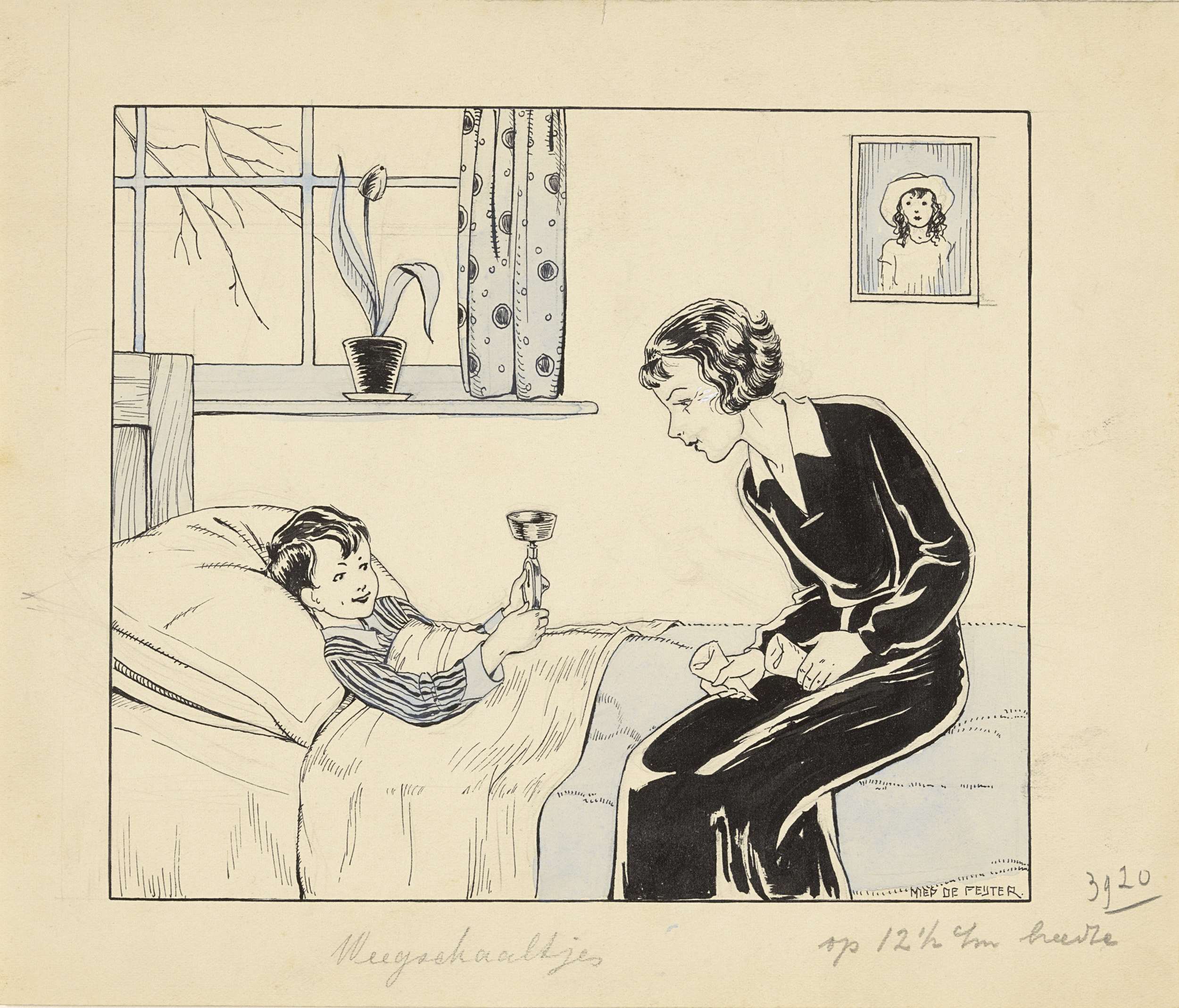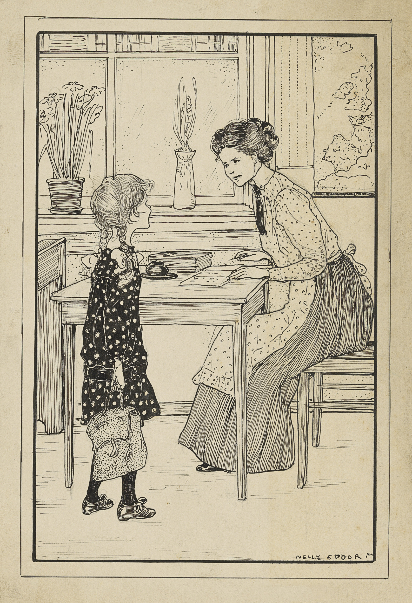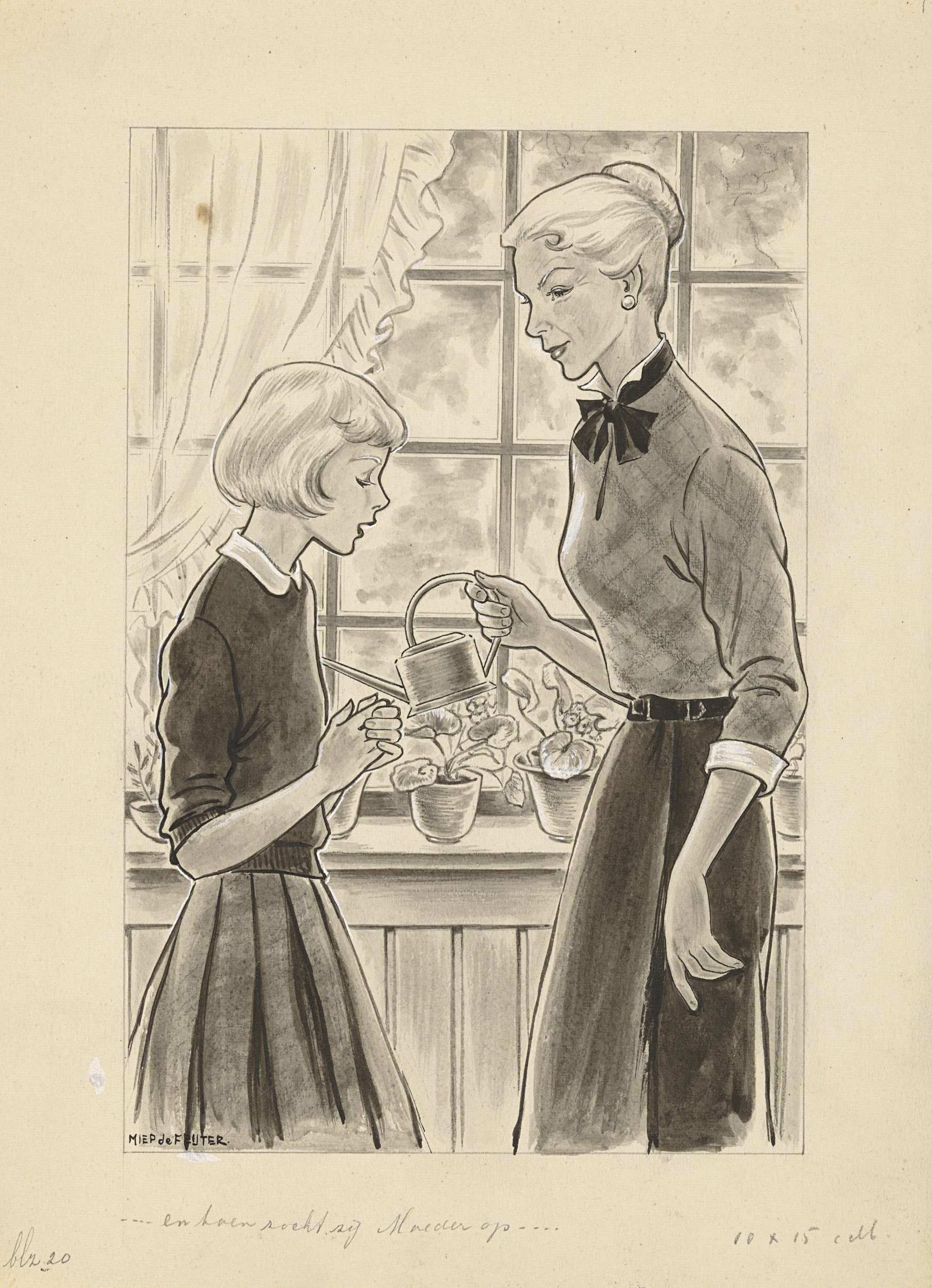 Meisje en haar moeder bij een venster