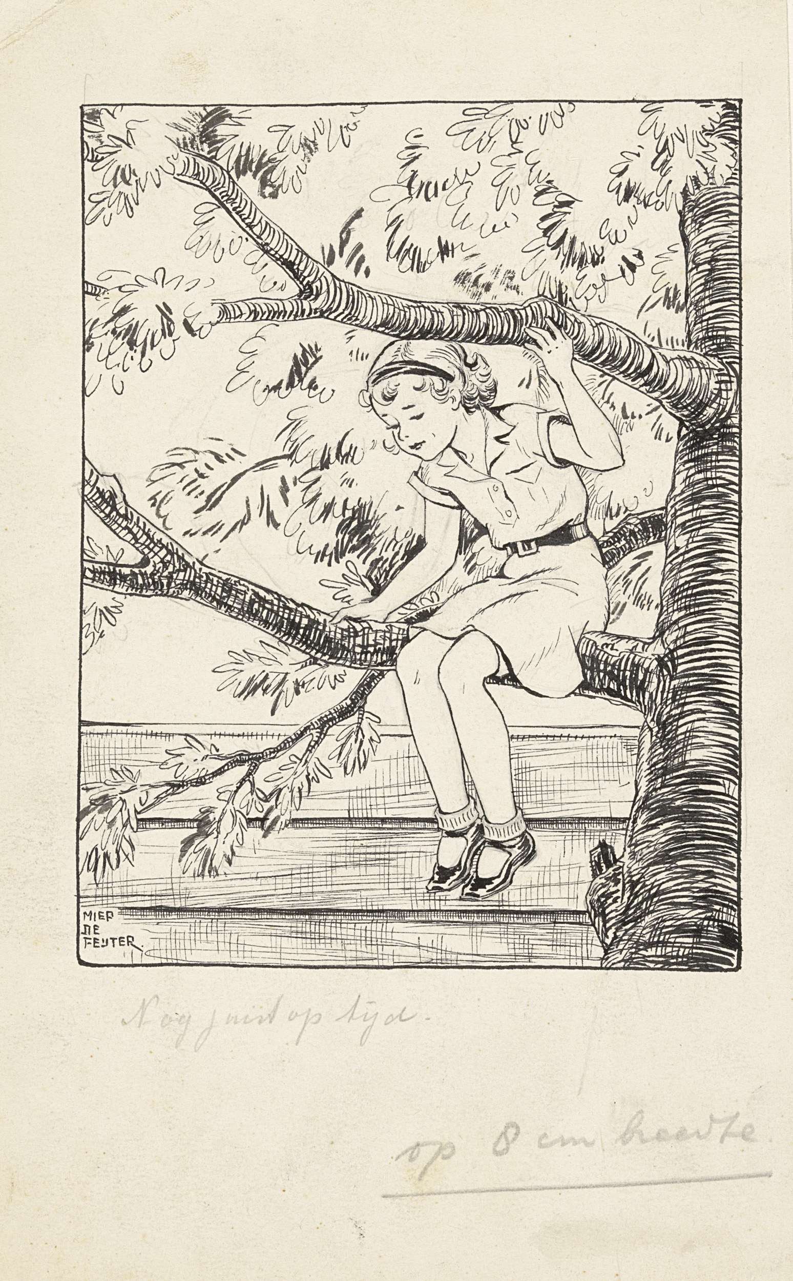 Jos zittend in een boom