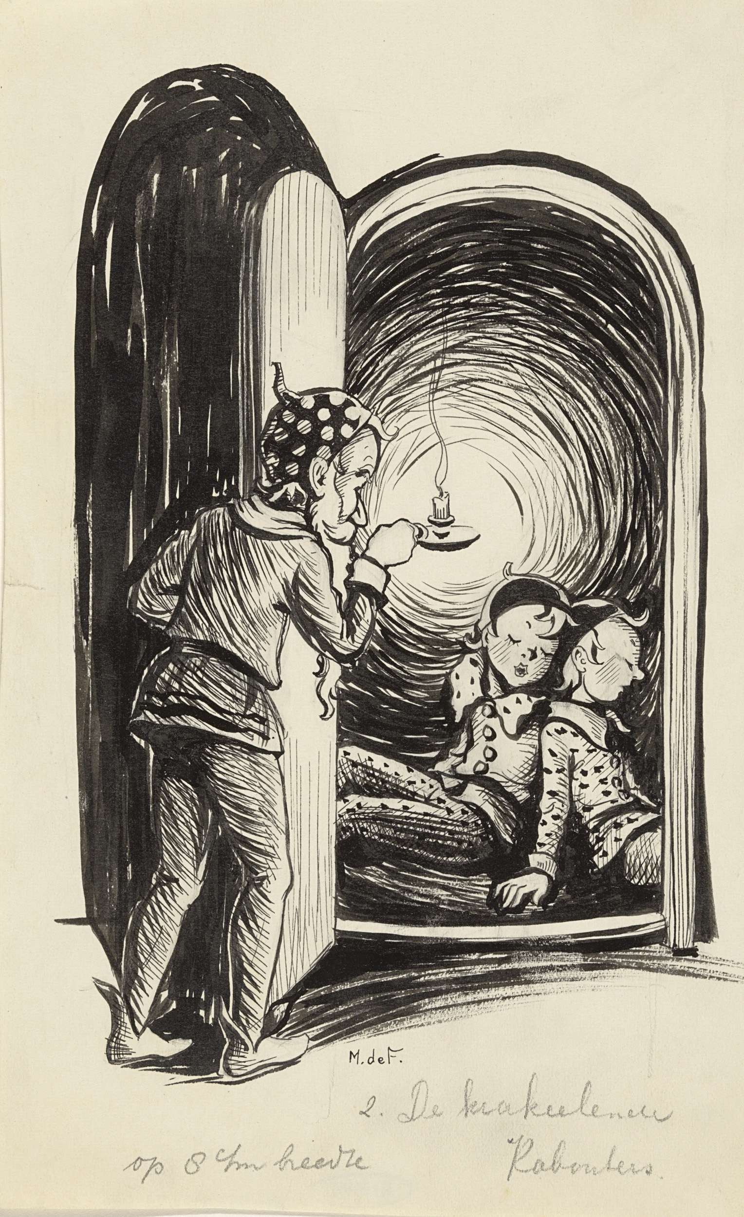 Twee slapende kabouters achter een deur