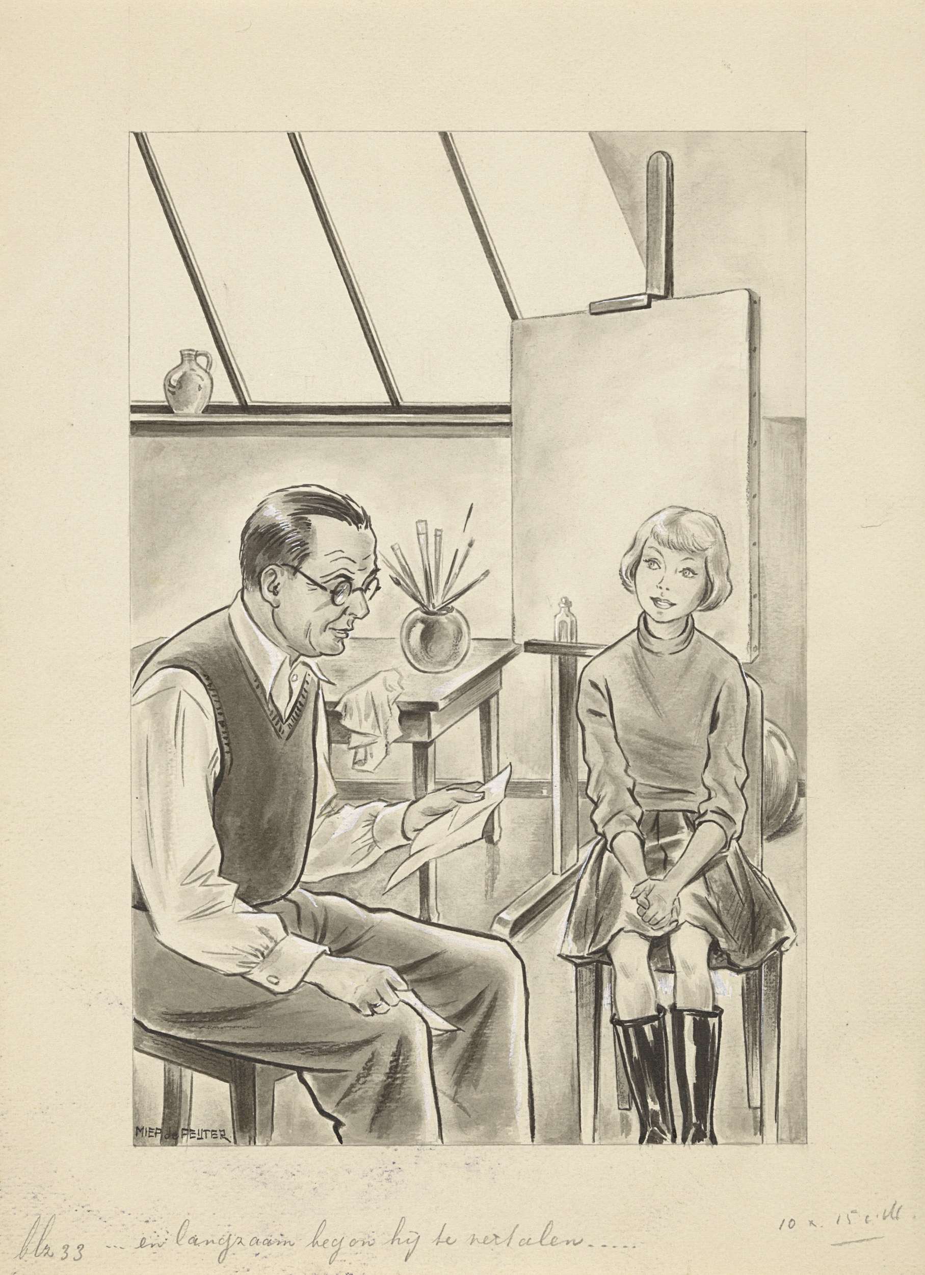 Man en meisje in een schildersatelier