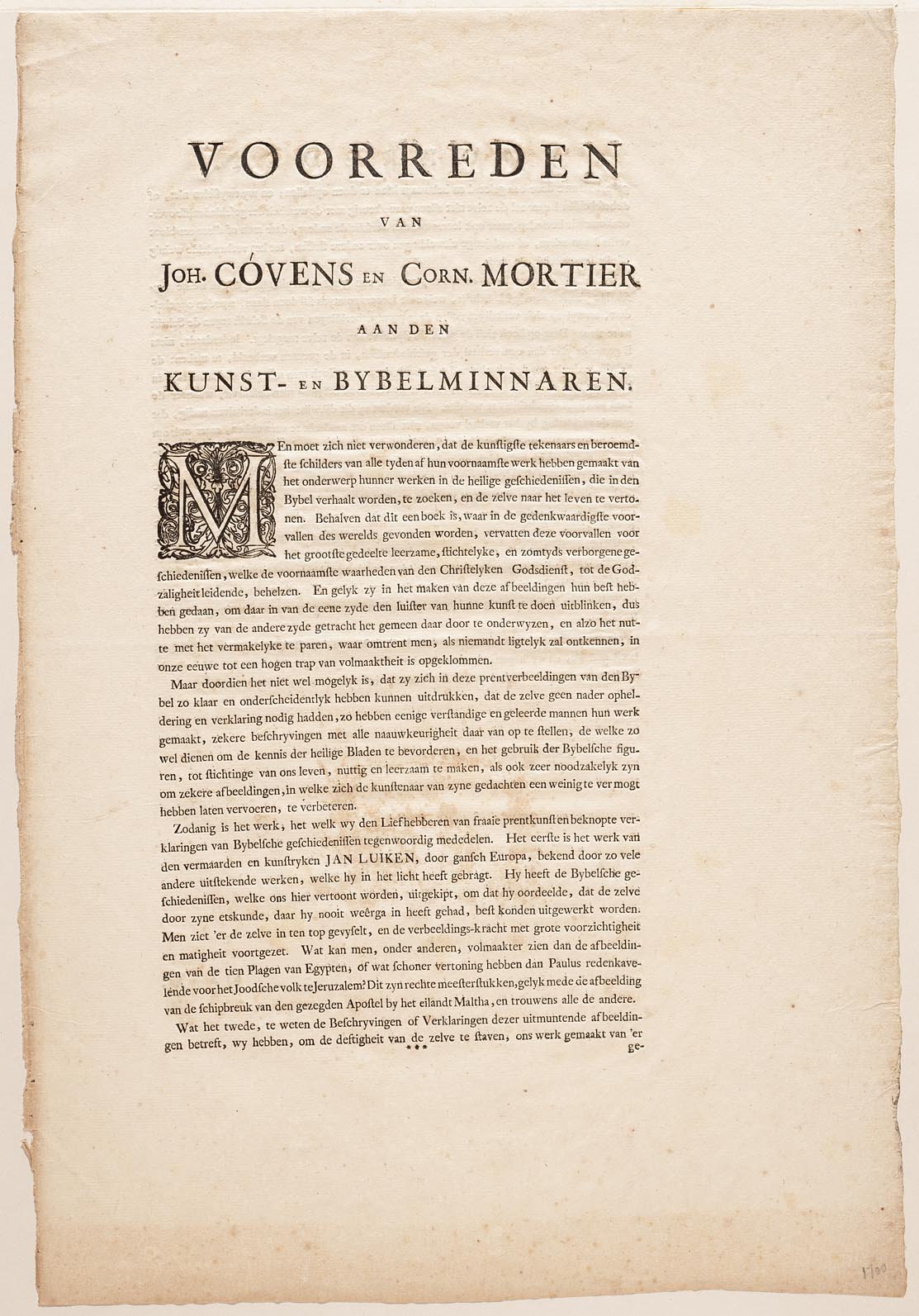 Voorreden van Joh. Cóvens en Corn. Mortier aan den k...