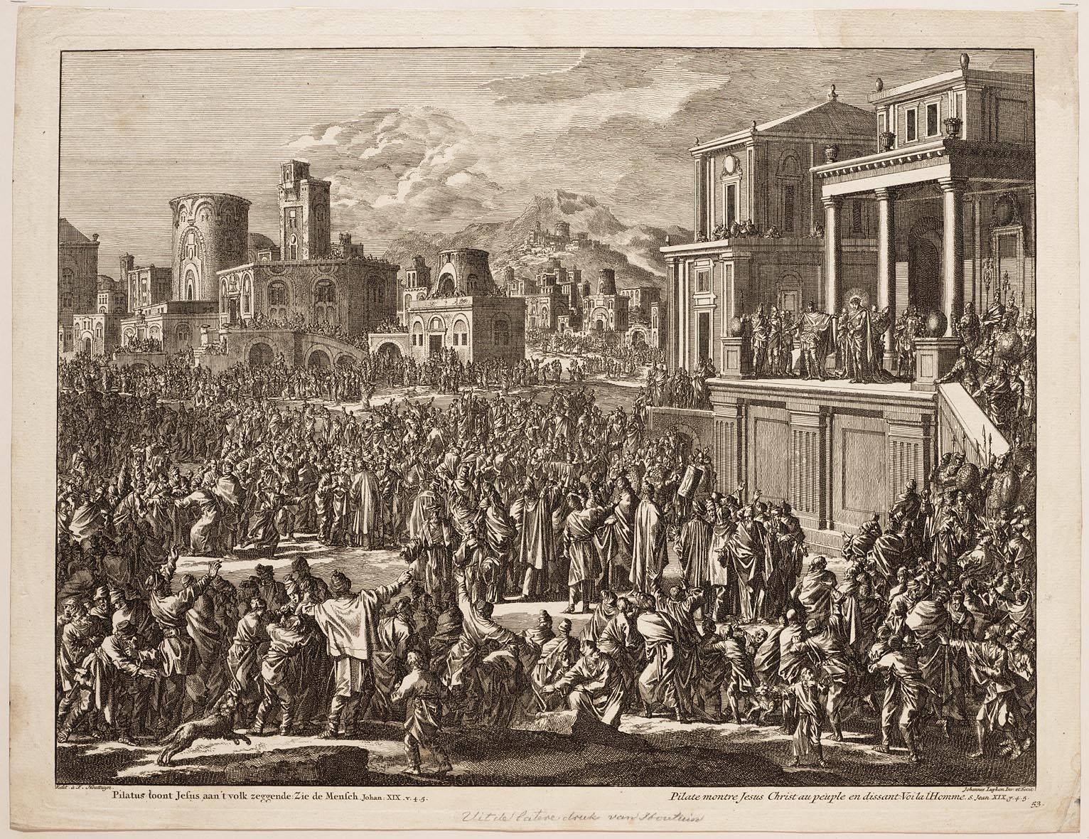 Pilatus toont Jesus aan ´t volk zeggende: zie de mensch