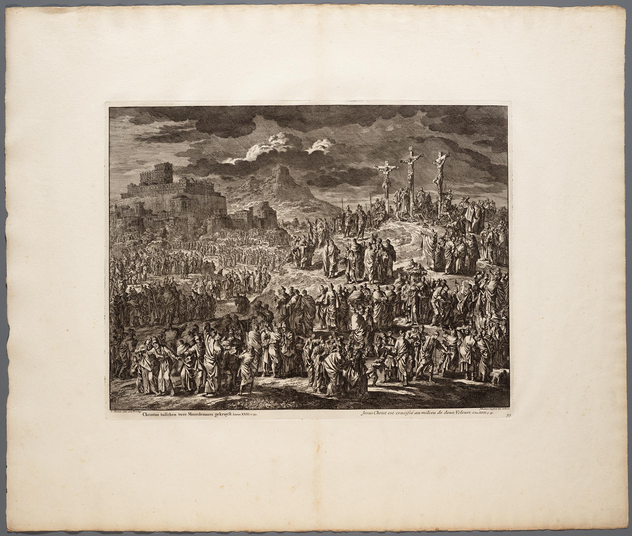 Christus tusschen twee moordenaars gekruyst