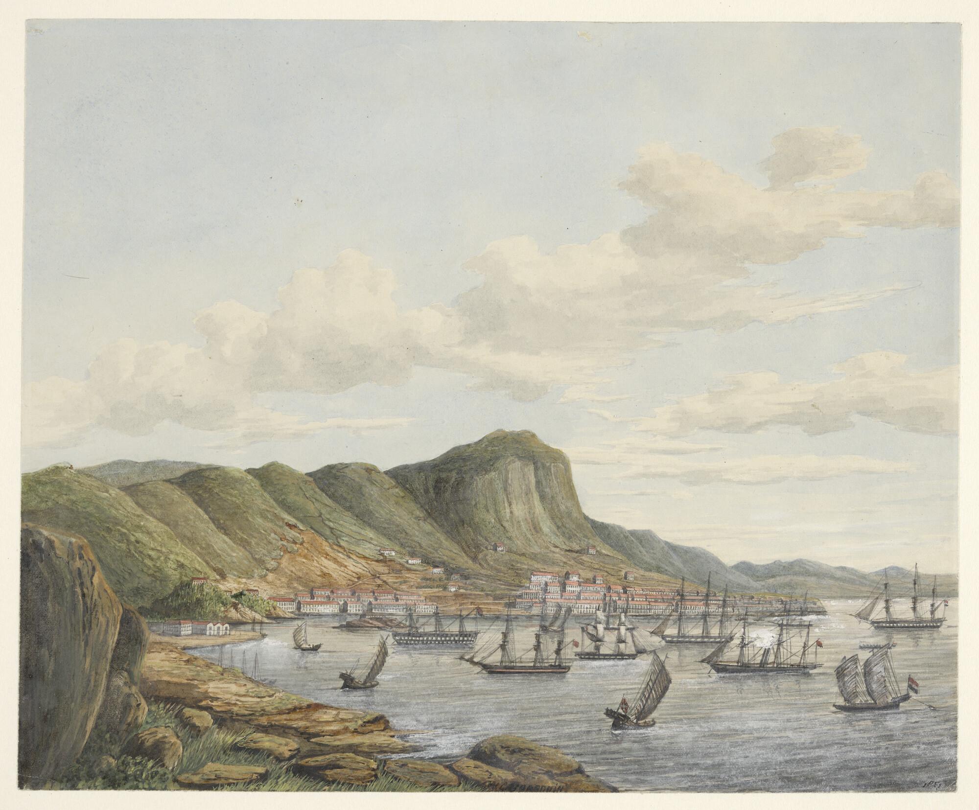 Het retourschip De Hoop van de VOC op de rede van Ka...