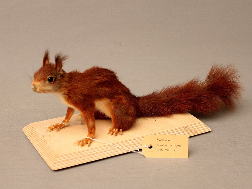 Eekhoorn, horizontaal op plank