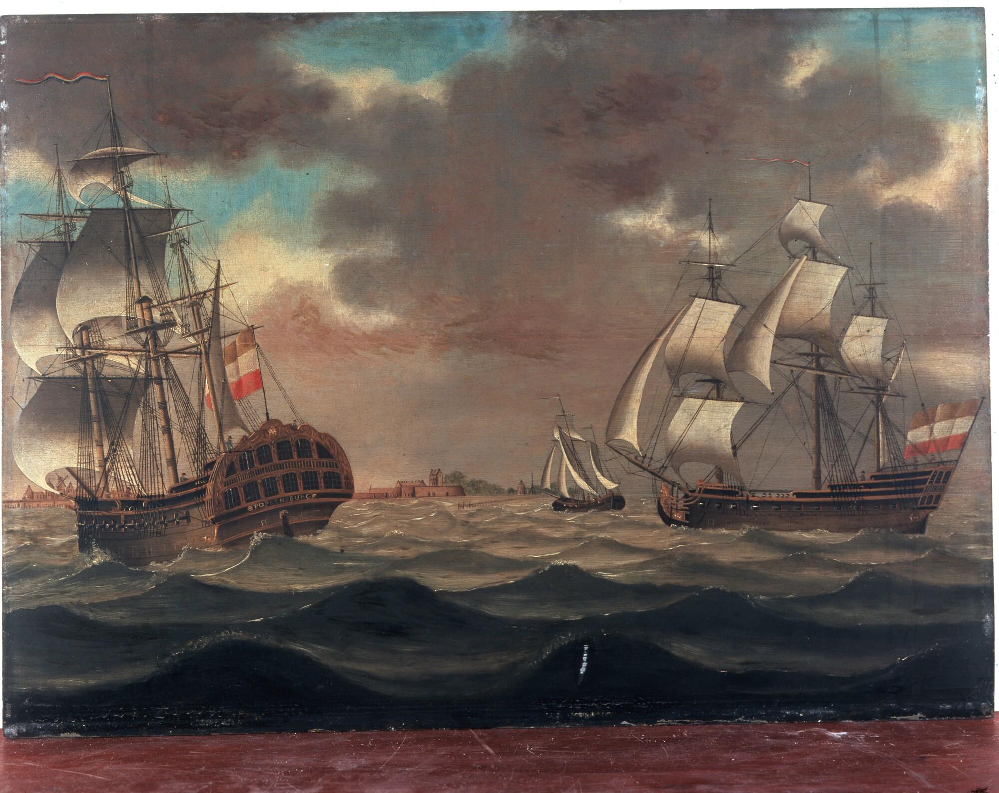 Een oorlogsfregat en een oorlogskotter