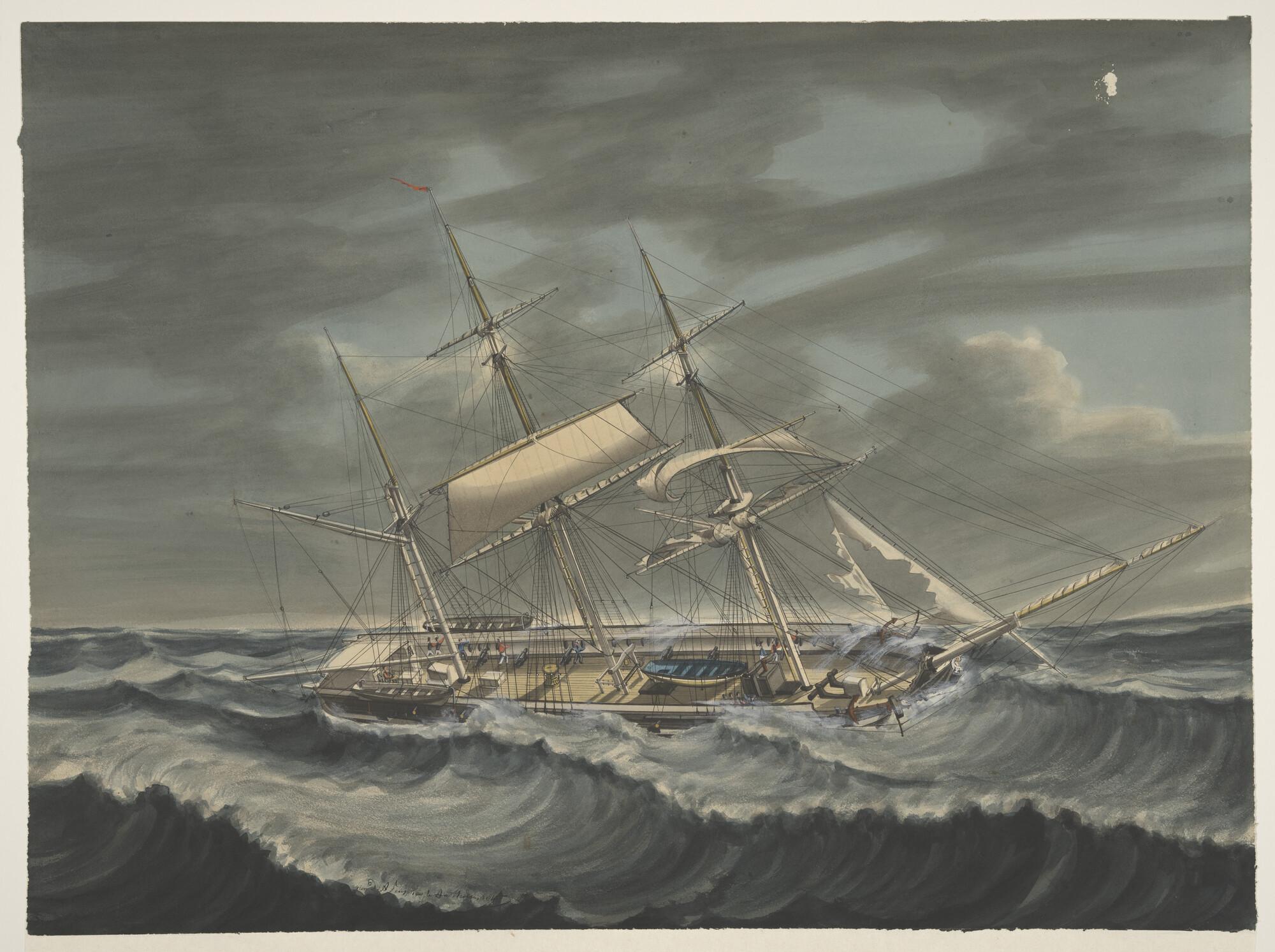 Het barkschip Geertruida schipbreuk lijdend