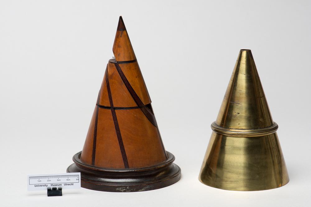 Palmhouten kegel met de kegelsnede in koperen calotte