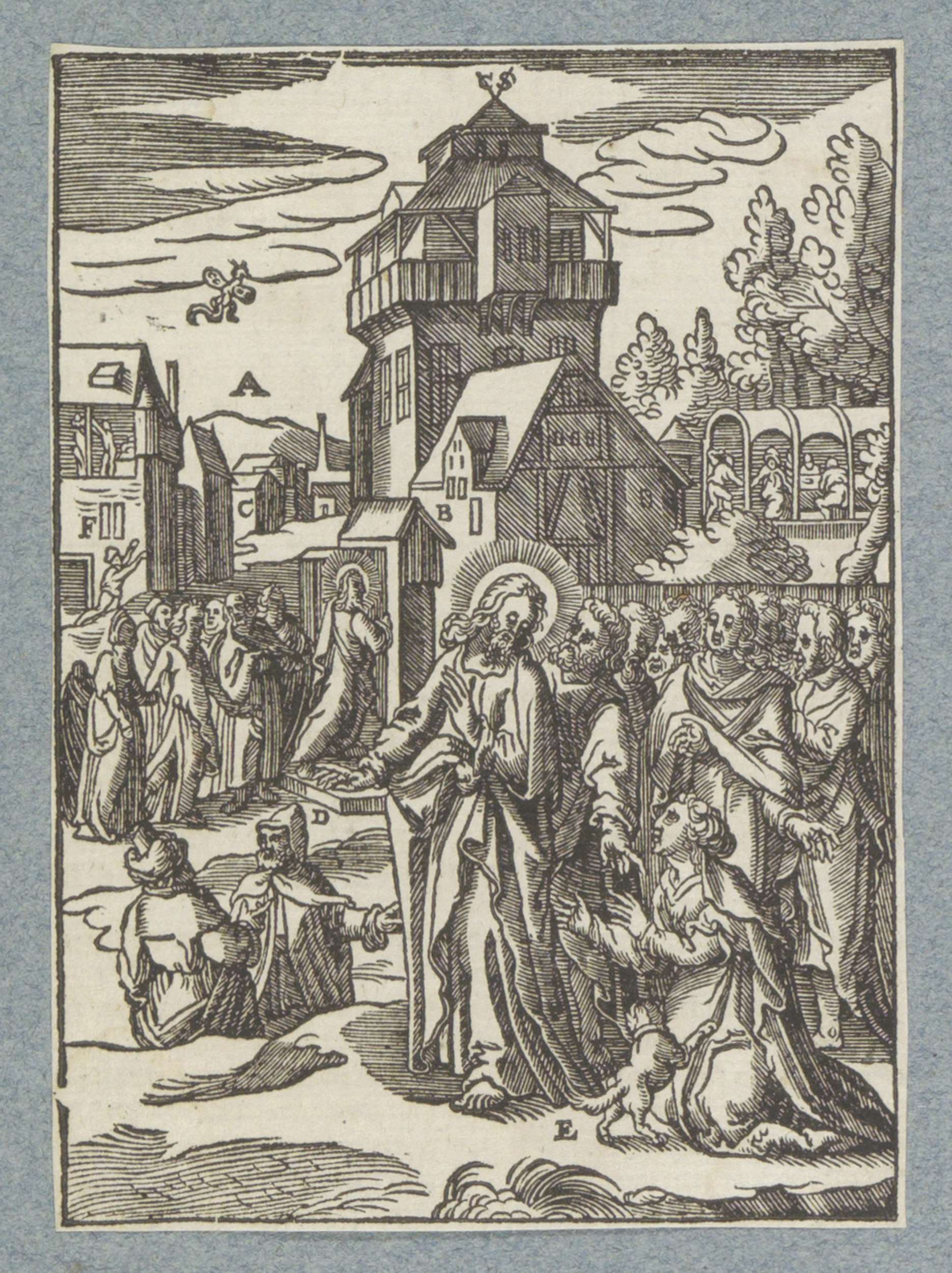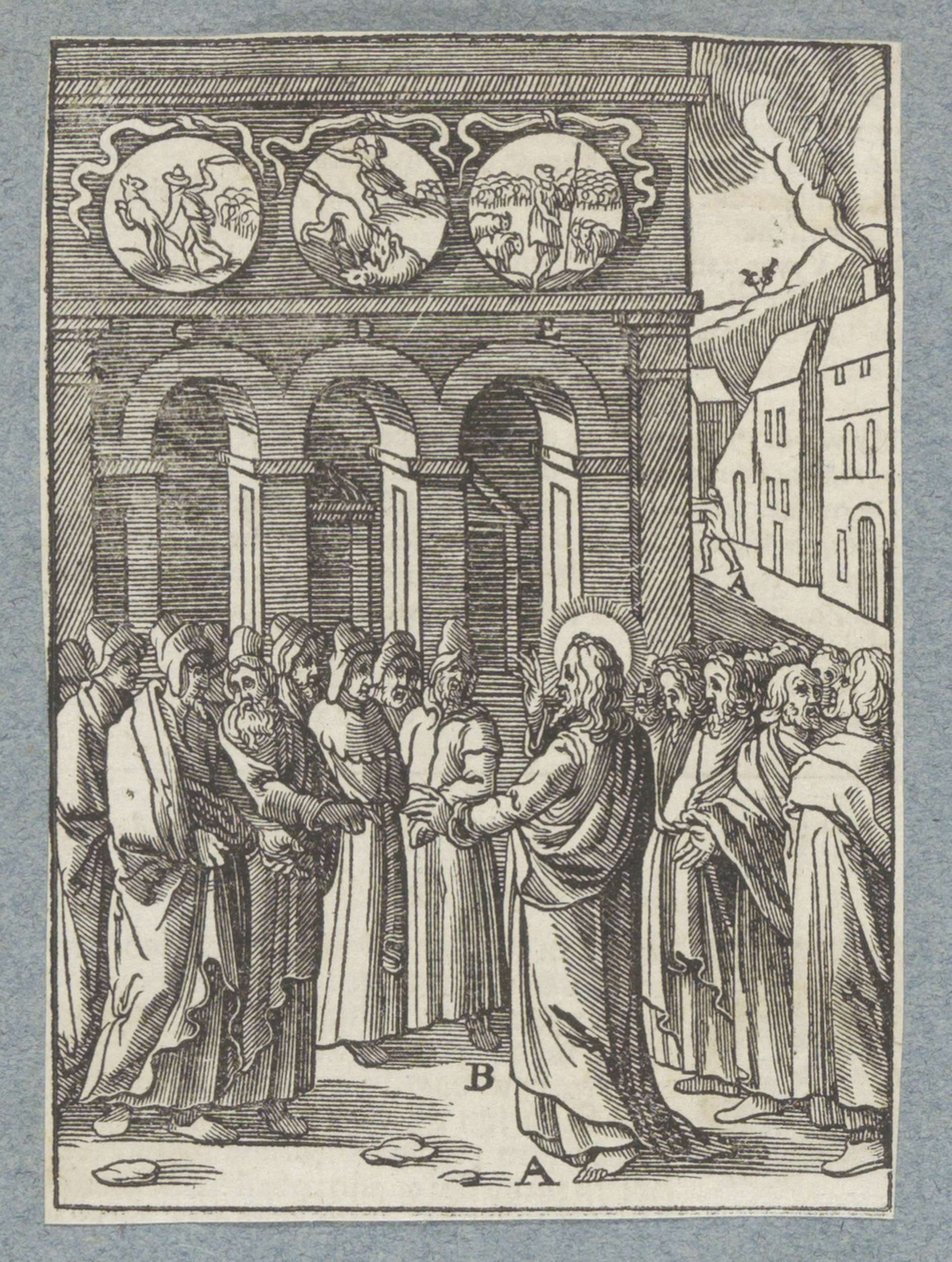 Christus geneest een verlamde man die door het dak w...