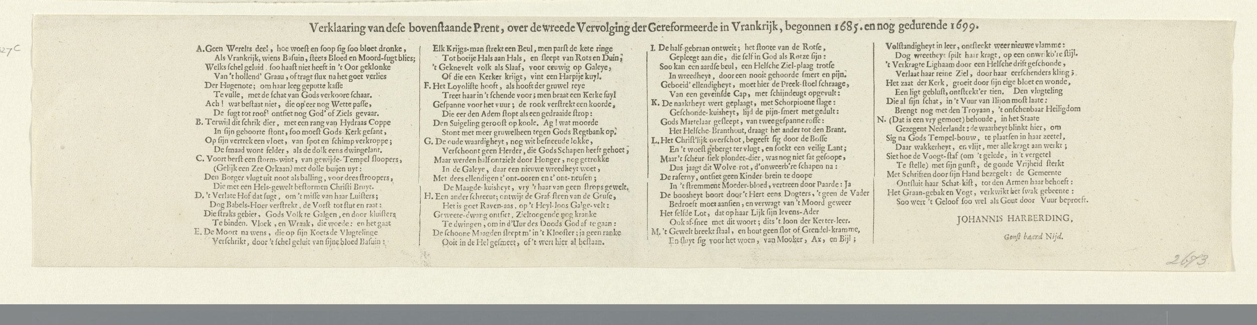 Tekstblad bij de prent van de vervolging der protest...
