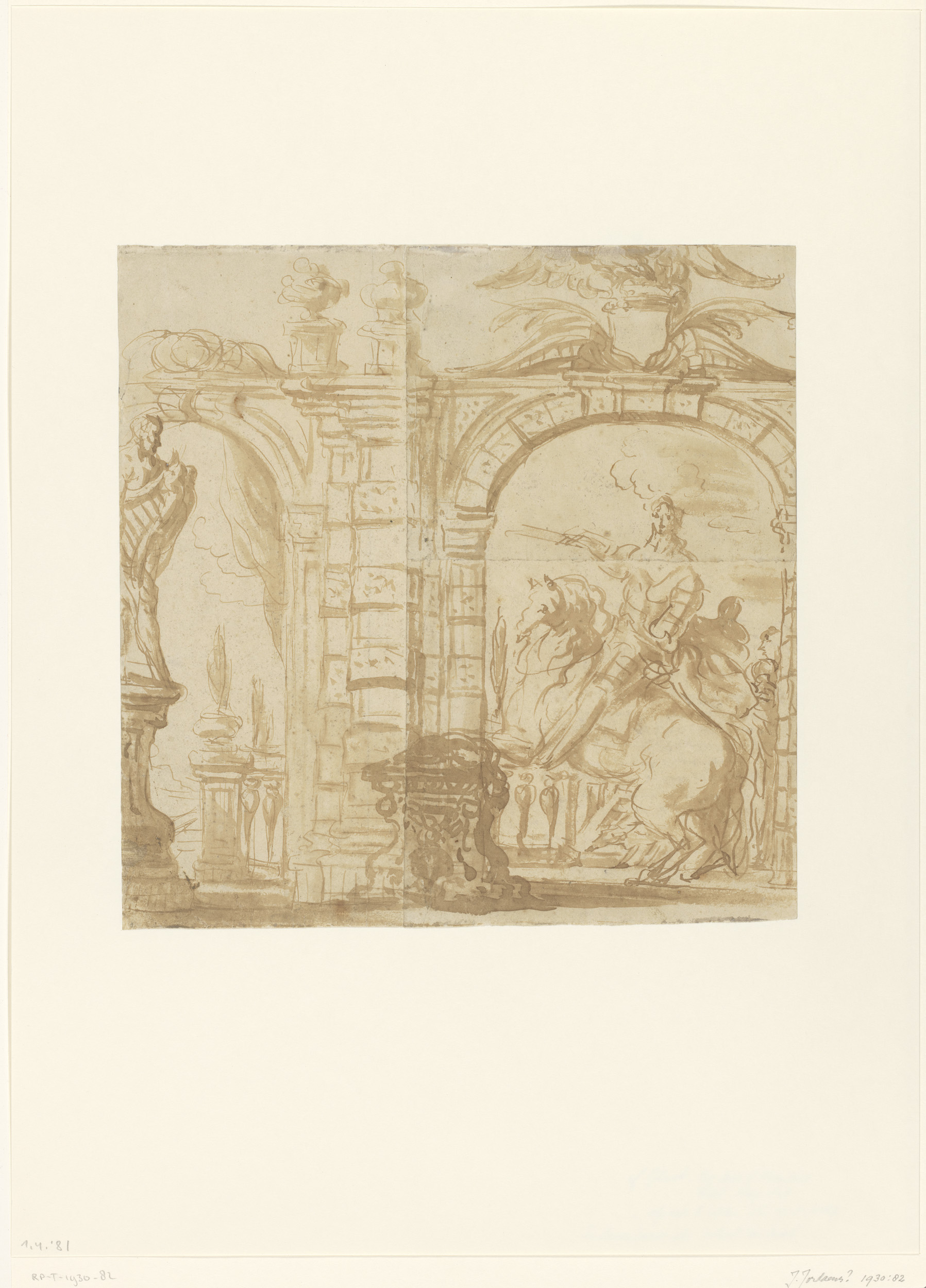 Ontwerp voor een plafondschildering met Eer (?) gekr...