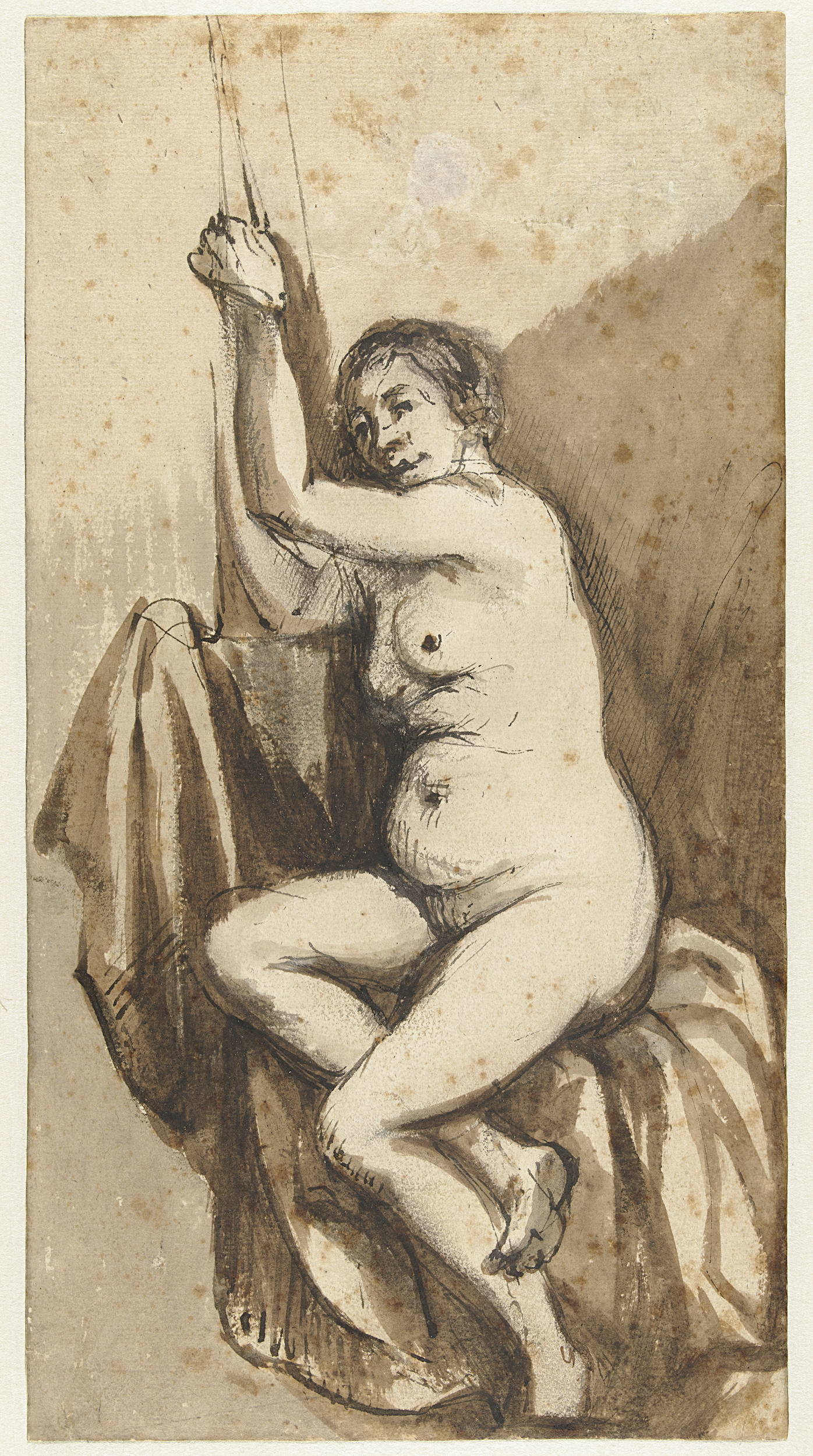 Twee vrouwelijke naaktfiguren en een Mercurius