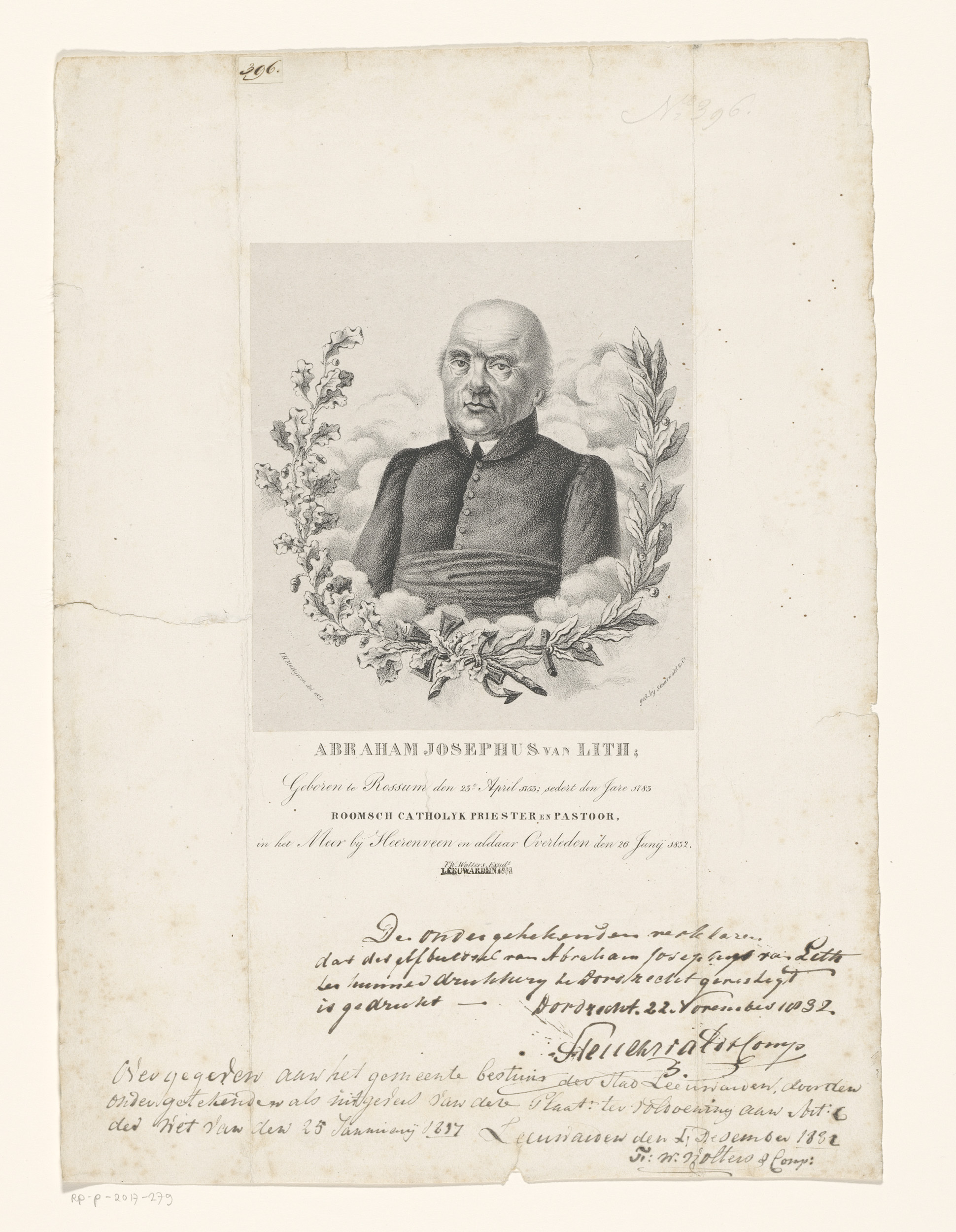 Portret van Abraham Josephus van Lith