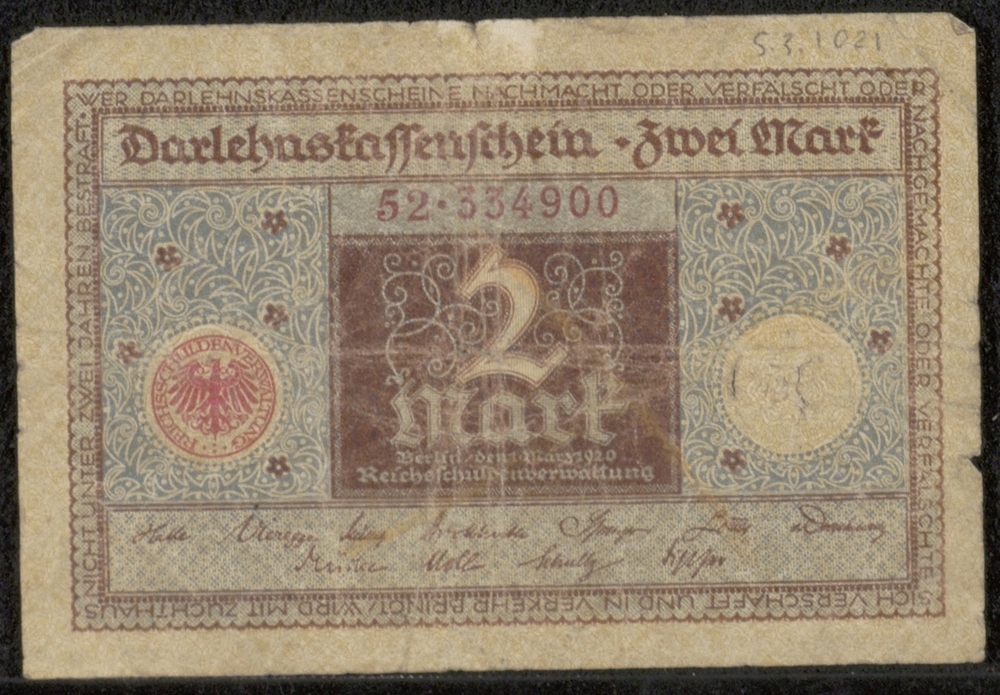 Bankbiljet, Darlehenskassenschein, 2 Mark